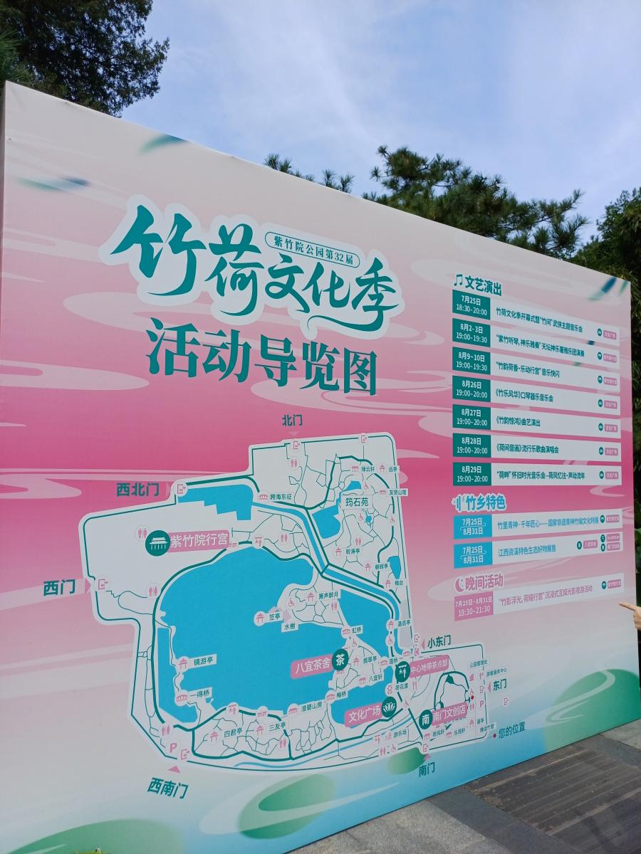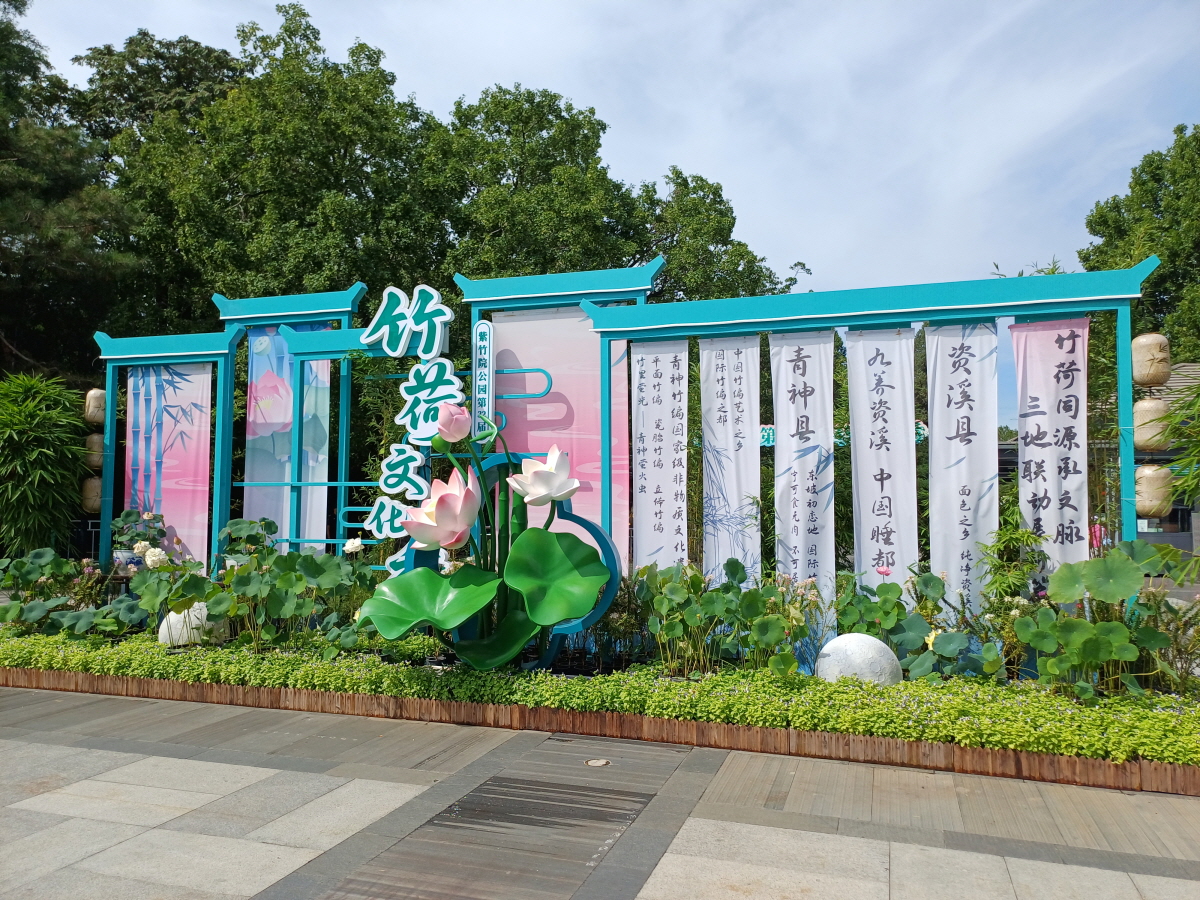 자죽원의 동문으로 입장하니 자죽원 이름이 새겨진 거대한 바위와, 제32회 죽하문화제(竹荷文化节)라는 표지판이 눈에 들어왔다.