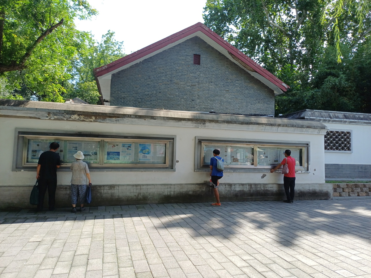 부두 근처 게시판에 붙어 있는 인민일보를 읽고 있는 시민들, 스마트폰으로 언제 어디서나 손쉽게 뉴스를 볼 수 있는 시대인데 게시판의 신문을 보는 사람들의 모습이 참 흥미로웠다.
