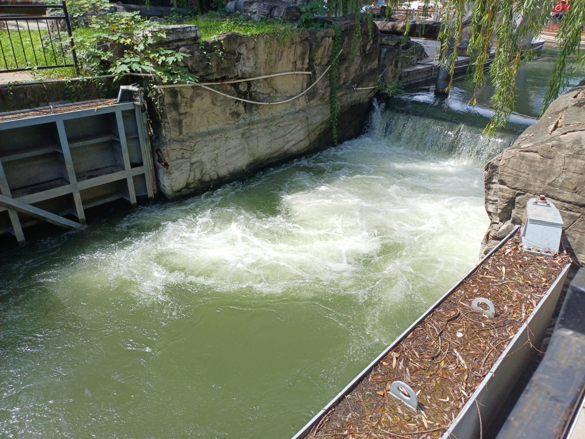 시원한 물소리가 들리기에 가까이 가서 살펴보니 자어만갑문(紫御湾船闸)이라는 곳이었다. 이곳에서 기존 수로에 고도차가 있었음을 알 수 있었다.