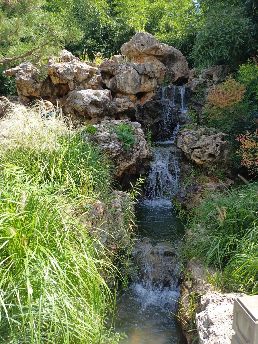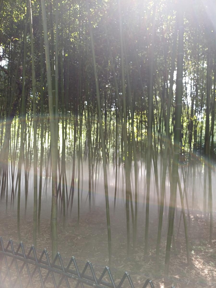 작은 돌다리를 건너 취군연우(翠筠烟雨)라는 구역에 도착하니, 대나무 숲에서 안개가 뿜어져 나왔다. 주기적으로 인공 안개가 나오는데 대나무와 안개가 어우러지는 모습이 정말 신비로웠다.