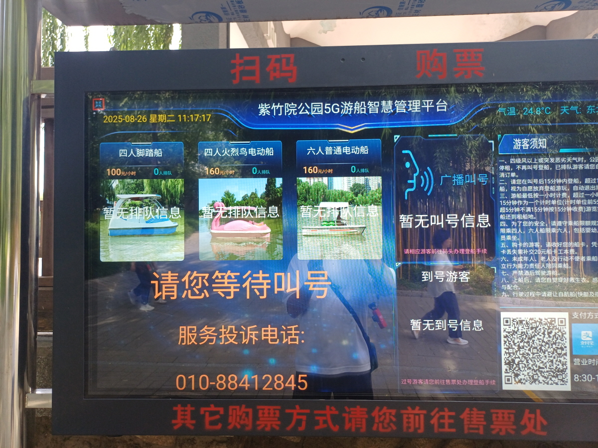 아래로 더 내려가니 자죽원 징선호(澄鲜湖) 호수에서 배를 탈 수 있는 부두가 나오는데, 이곳에서는 무인 시스템을 이용해서 이용권 구매가 가능했다. 4인용 인력으로 가는 배의 이용료가 1시간에 100위안 정도 수준이었다.