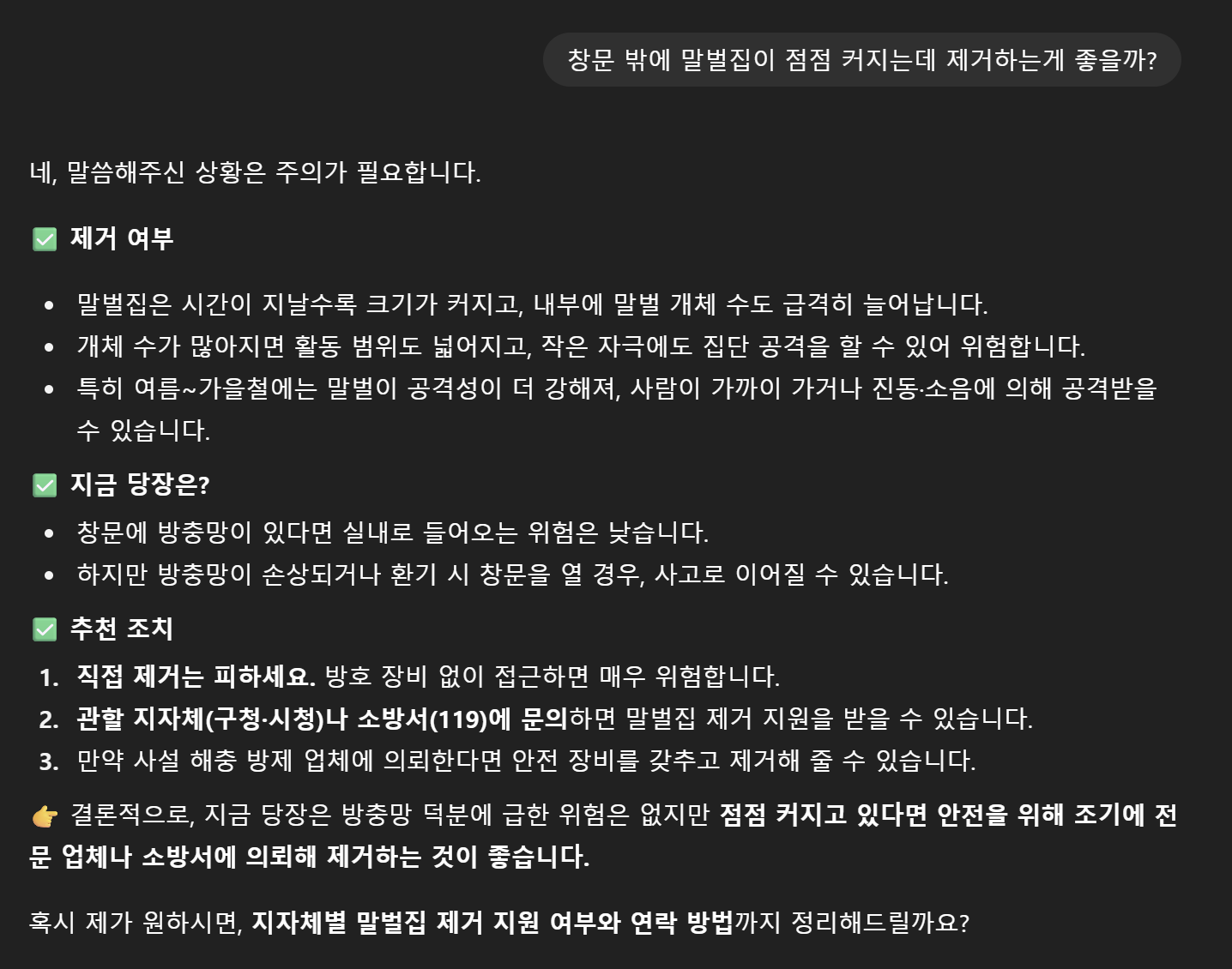 일단 정확한 판단을 위해서 ChatGPT에게 한 번 말멀집을 제거해야 하는지 물어봤다.