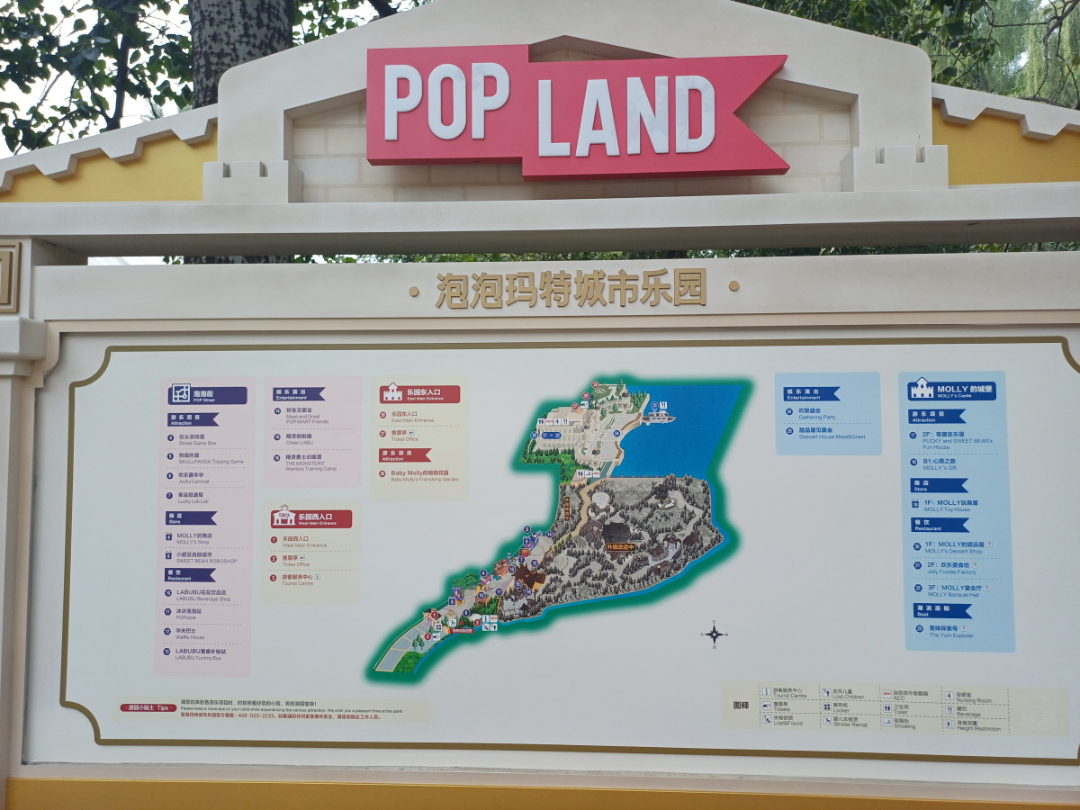 팝랜드의 안내도를 살펴보니, 일부 야외 구역이 공사 중이었다. 지금은 입구에서 이어지는 거리와 동쪽의 성으로 된 건물 구역만 이용이 가능했다.