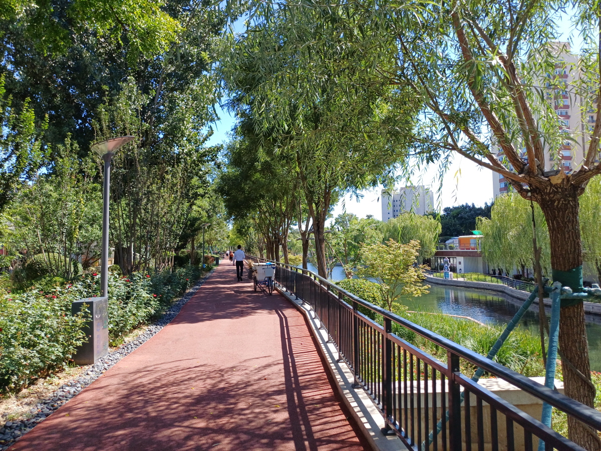 베이징 3 환 도로인 연사교(燕莎桥) 아래에는 지하통로가 마련되어 있는데, 이곳을 통해서 계속 산책로가 이어진다.