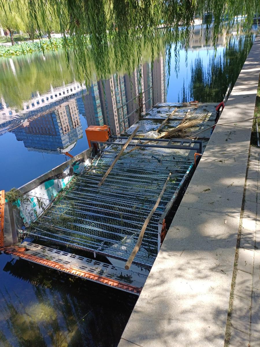 강에서 한창 청소 작업이 진행 중이었는데, 특별하게 제작된 선박을 이용해서 불필요한 수초를 제거 중이었다. 나름 하천 관리도 잘하는 것 같았다.