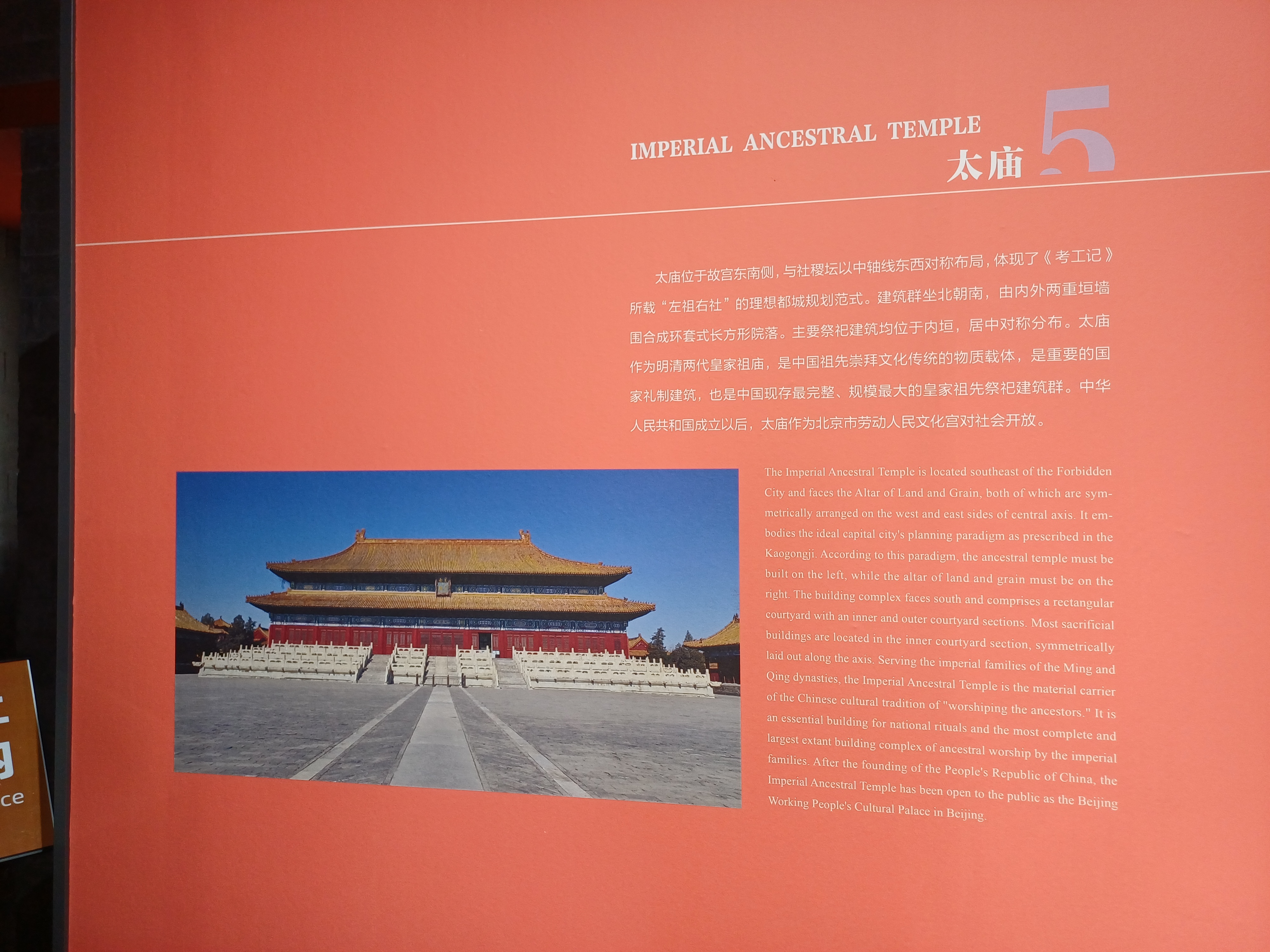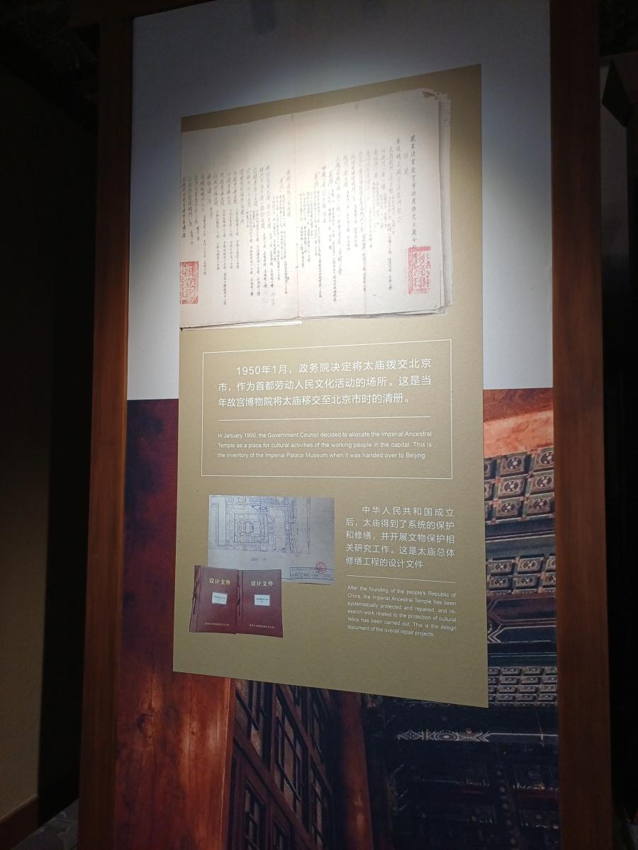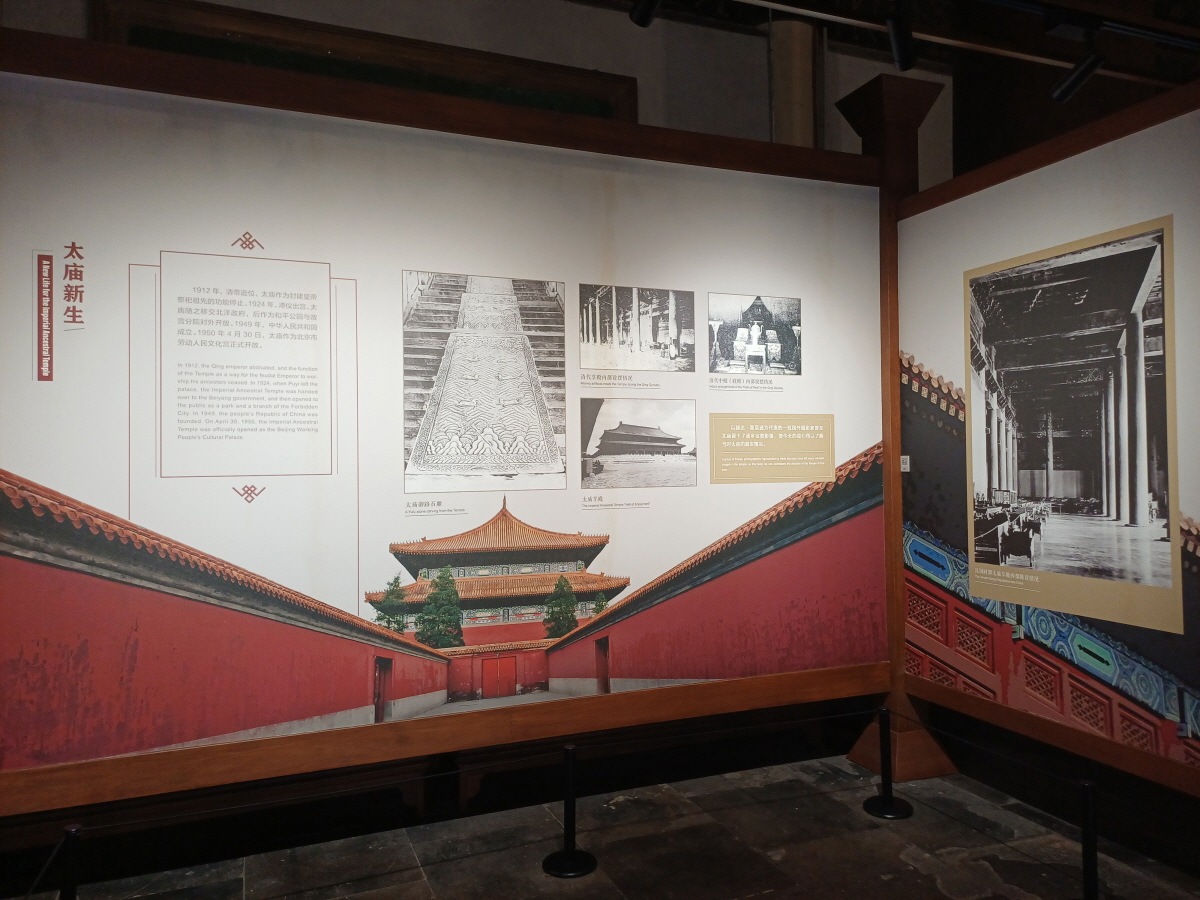 중국은 신 중국 수립 이후 노동인민문화궁으로 이름을 바꾸면서 황실제사가 중단되는 바람에 본래의 기능을 상실했는데, 대한민국의 종묘는 본고장에서 말살된 전통의 명맥을 아직도 잇고 있다고 한다.