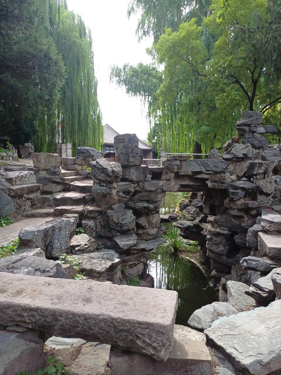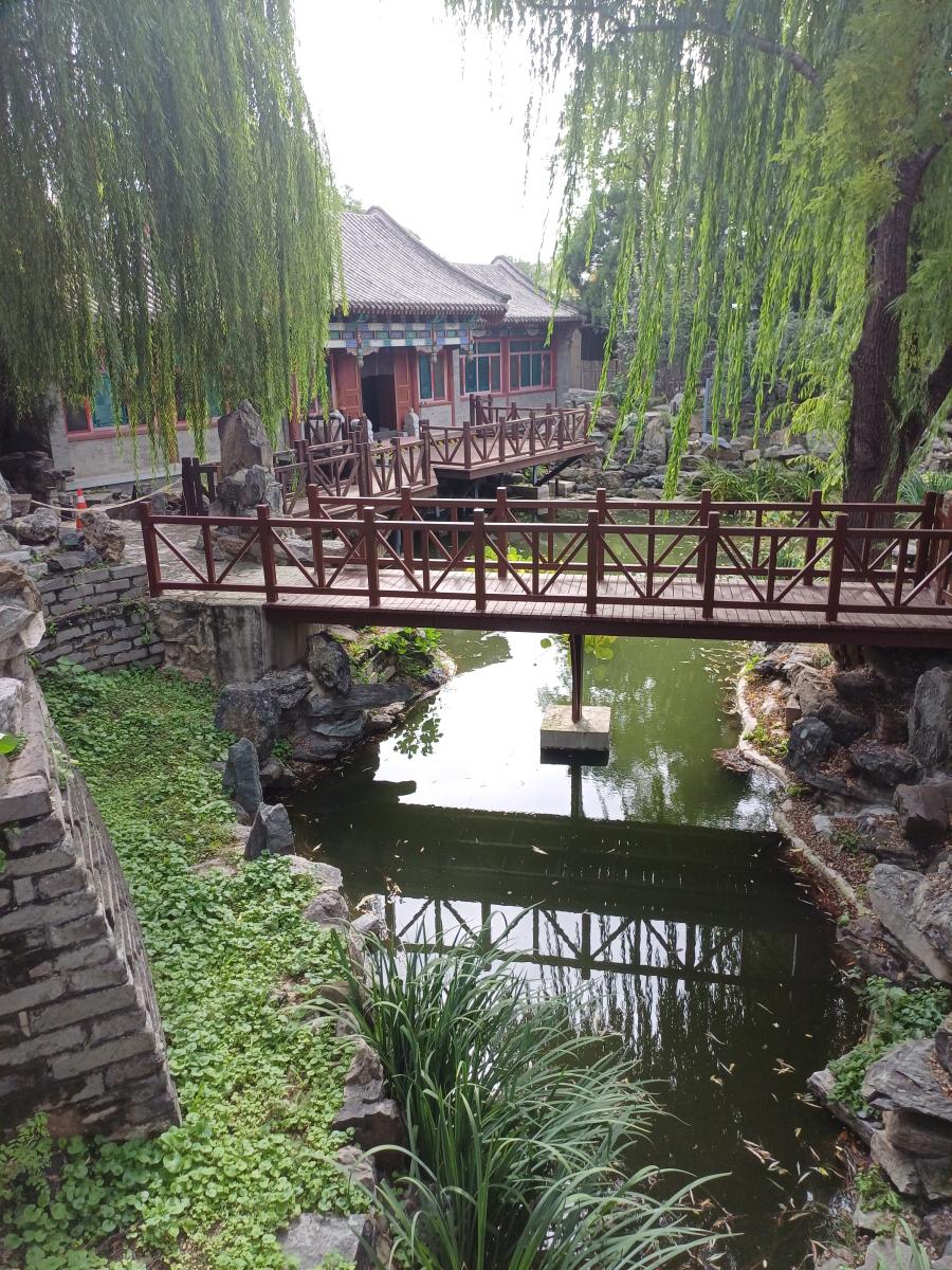 입구를 지나면 바로 극문교(戟门桥)라는 다리가 나오는데, 다리 아래 수로에 금붕어로 가득하다. 극문교는 명대에 처음 건설되었으며, 건륭 연간에 고궁의 어하를 이곳에 도입했으며, 원래 다리를 개조하여 옥띠처럼 생겼다고 하여 옥띠 다리(玉带桥)라고 불렀다고 한다.