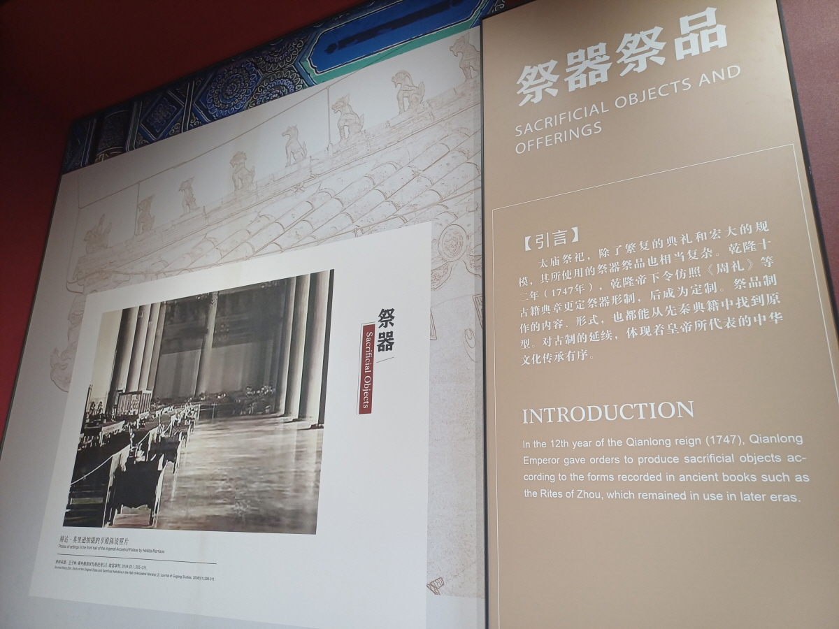 주요 건축물 좌측에 위치한 배전(配殿)들 에서는 작은 전시들을 볼 수 있었는데, 제사 도구인 제기(祭器)를 전시하는 공간도 있었고,
