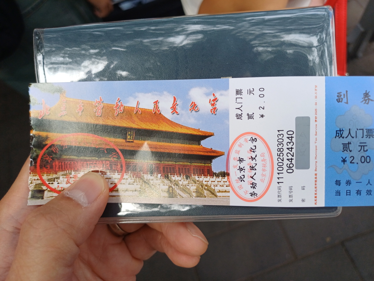 노동인민문화궁은 천안문광장과 연결되어 있는 남문으로 들어가도 되는데, 천안문 광장은 별도로 사전 예약을 해야만 들어갈 수 있기 때문에, 남지자(南池子)라고 적혀 있는 천안문 광장 우측 길을 따라 걸어 올라가 동문으로 가는 것을 추천한다.
