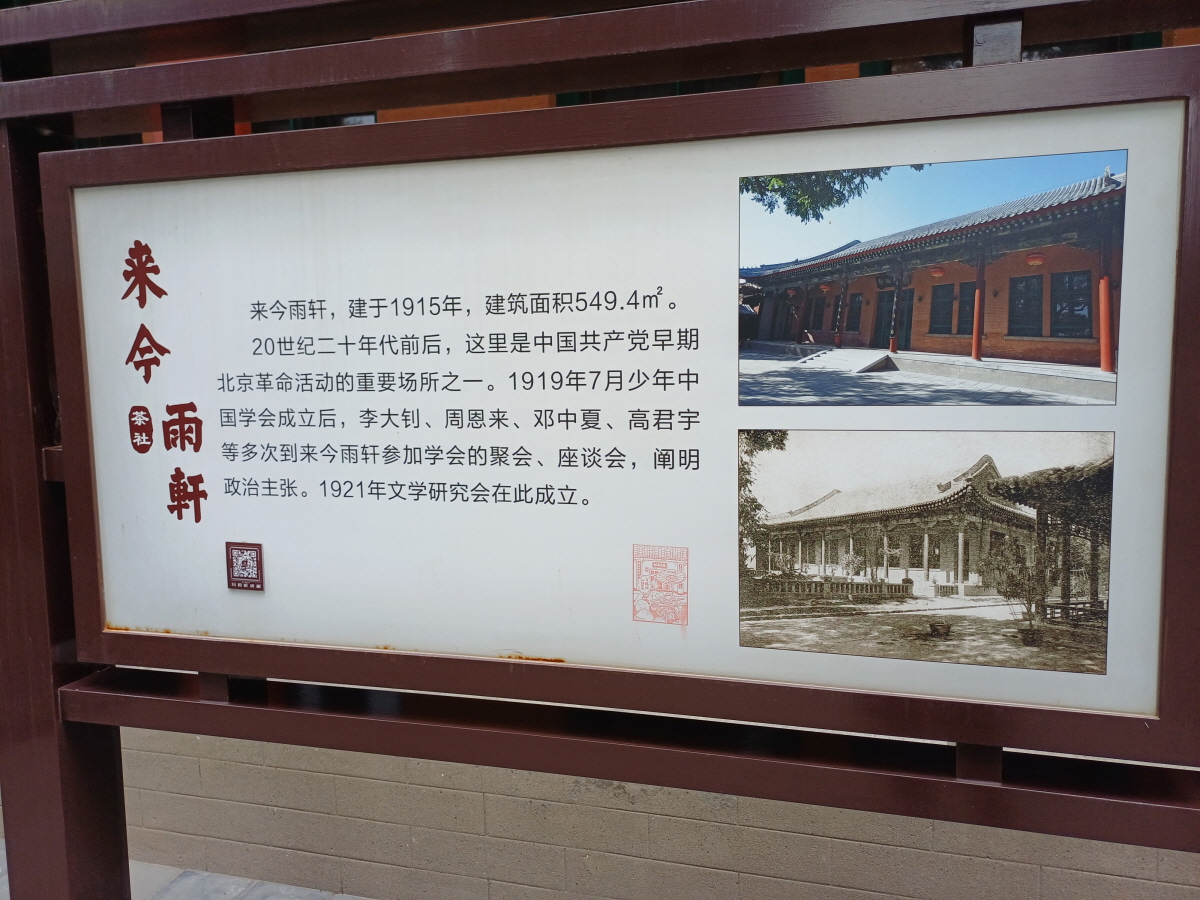 공원의 동남쪽에는 래금우헌(来今雨轩)이라는 오래된 찻집이 나오는데, 이곳이 중산공원의 필수 방문 장소다. 1915년에 설립되었으며, 중국의 중요한 문화 살롱으로 1920년대 베이징에서 중국 공산당 초기 혁명 활동의 주요 장소였다고 한다. 루쉰(鲁迅)이 이곳에서 번역 작업을 하기도 했으며, 2021년 수리 후 전통 동채 만두 등 다과를 복원하기도 했다고 한다.