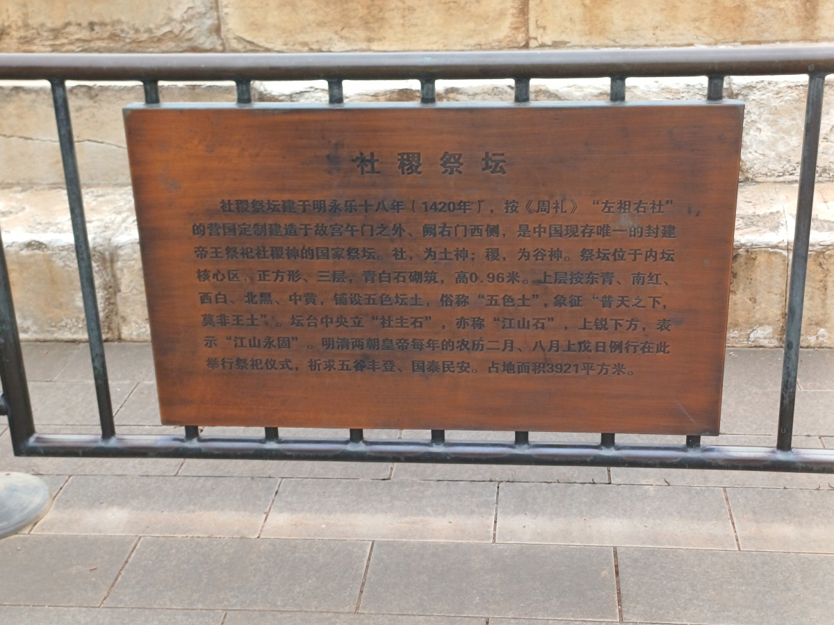 고대 도성을 설계할 때 궁궐을 중심으로 종묘는 왼쪽 곡식의 신과 토지의 신에게 제사를 지내는 사직단은 오른쪽에 배치하는 원칙을 좌조우사(左祖右社)라고 하는데, 베이징도 자금성을 중심으로 좌조우사가 잘 적용되어 있다.