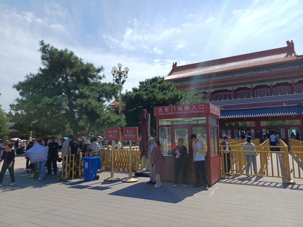 지하철 출구로 나오면 보안검색 구간이 보이는데 천안문광장으로 가기 위해서는 이 검색대를 통과해야 한다. 여기서는 중국 현지인은 신분증 스캔과 안면인식을 진행하며, 외국인은 여권검사 후 통과가 가능했다.