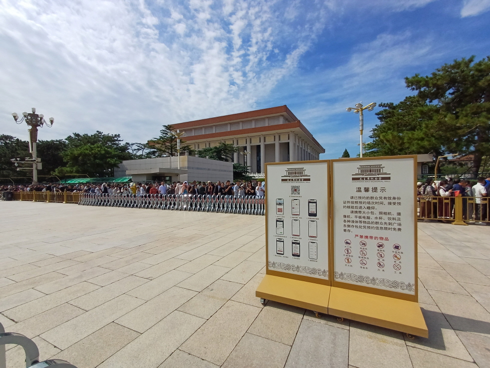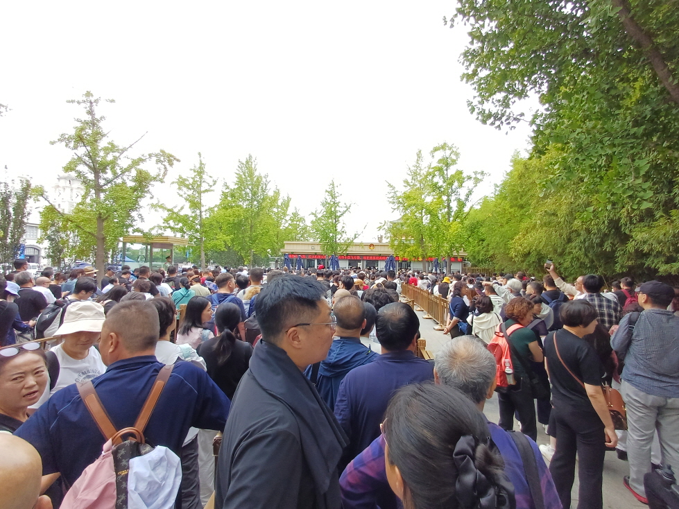 길을 건너니 모주석기념당에 입장하기 위해 줄을 서 있는 인파들이 먼저 보였다. 이곳을 방문하기 위해서는 온라인으로 별도 사전 예약을 해야 하며, 입장 시에는 지갑과 핸드폰을 제외한 아무것도 가지고 들어갈 수 없어 짐은 보관소에 맡겨야 한다.