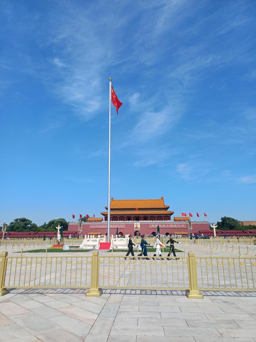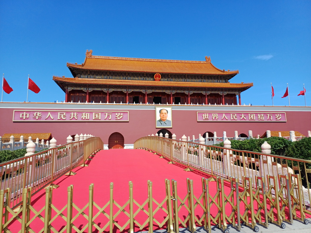 드디어 선명하게 드러나는 천안문 성루의 모습과 마오쩌둥의 초상화, 중화인민공화국만세(中华人民共和国万岁) 세계인민대단결만세(世界人民大团结万岁)라는 큰 표어도 보인다. 베이징의 대표 인증숏 포인트로 여기저기서 천안문을 배경으로 사진을 찍는 사람으로 가득했다.