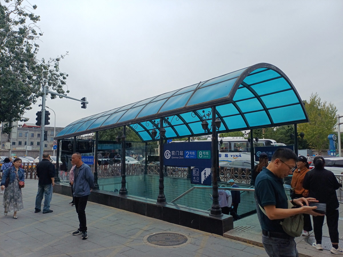 천안문광장 방문 당일 지하철을 이용하여 오전 9시 30분경에 전문(前门) 역에 도착하여 E2출구로 나왔다. 천안문광장 방향을 알려주는 이정표를 따라서 밖으로 나갔다.