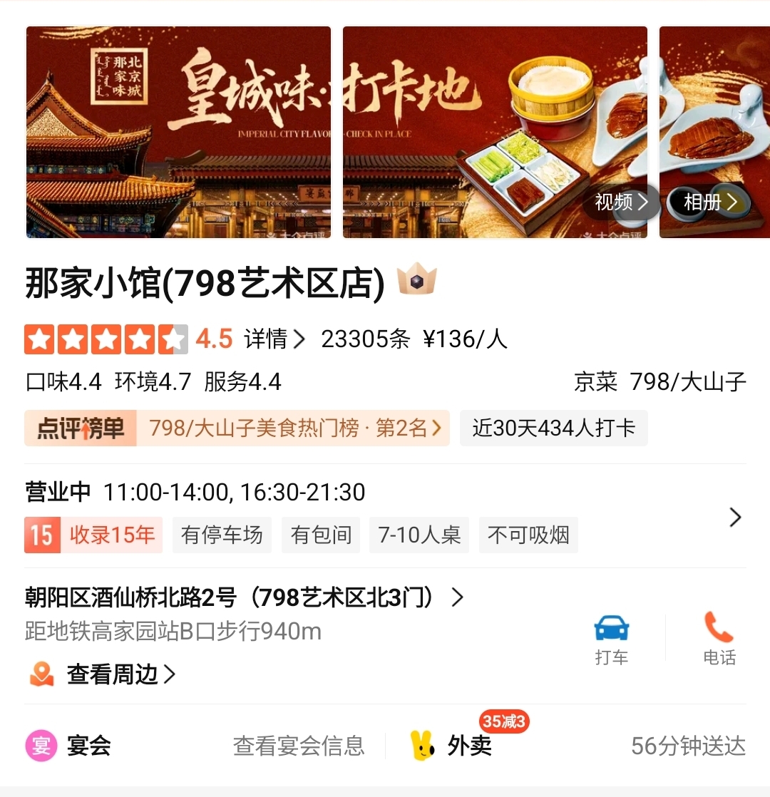 물론 2023년에는 환경 관리 문제로 행정 처분을 받는 등 아쉬운 기록도 있으나, 현재는 가맹 사업, 브랜드 운영, 문화 행사 기획 등 다방면으로 확장하며 성장세를 이어가고 있다. 종합하자면, 那家小馆은 베이징을 대표하는 궁중 요리 전문 레스토랑으로, 정통성과 세련됨, 그리고 공간적 아름다움을 함께 갖춘 특별한 식문화 경험의 장이라 할 수 있다.