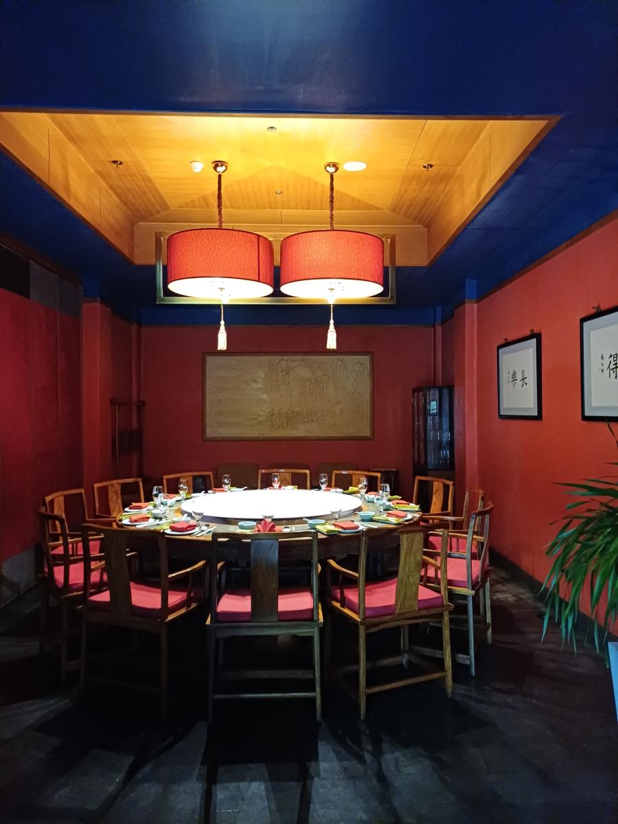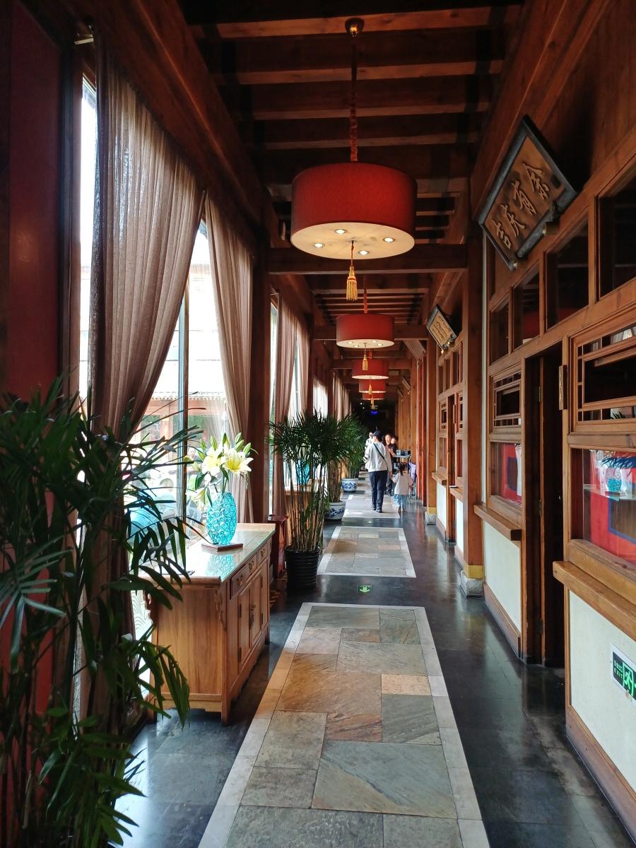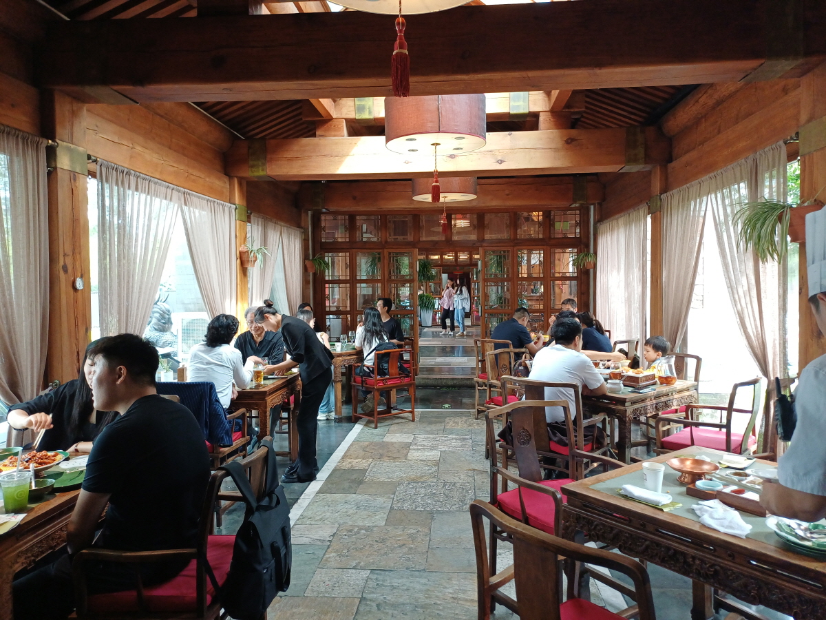 식당은 전통 사합원(四合院) 양식의 건축방식으로 지어졌는데, 식당 가운데 넓은 정원과 어우러지는 모습이 정말 아름다웠다.