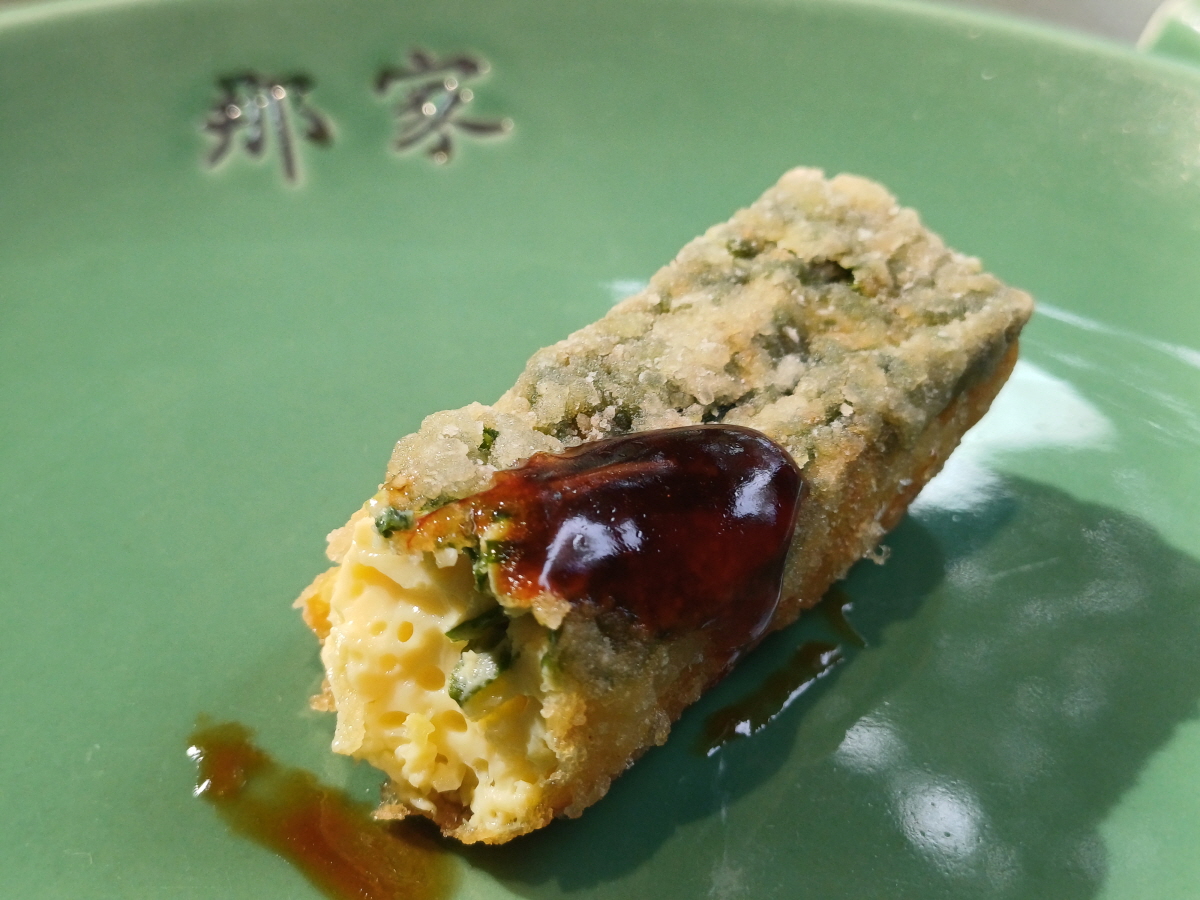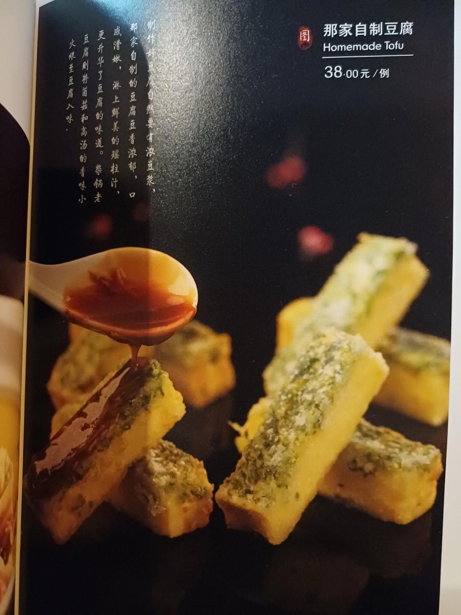 가장 먼저 나온 식당에서 직접 제조한 두부로 만든 요리, 두부를 튀긴 요리라고는 하는데 음식 속의 식감은 두부보다 달걀찜 같은 느낌이 많이 났다.