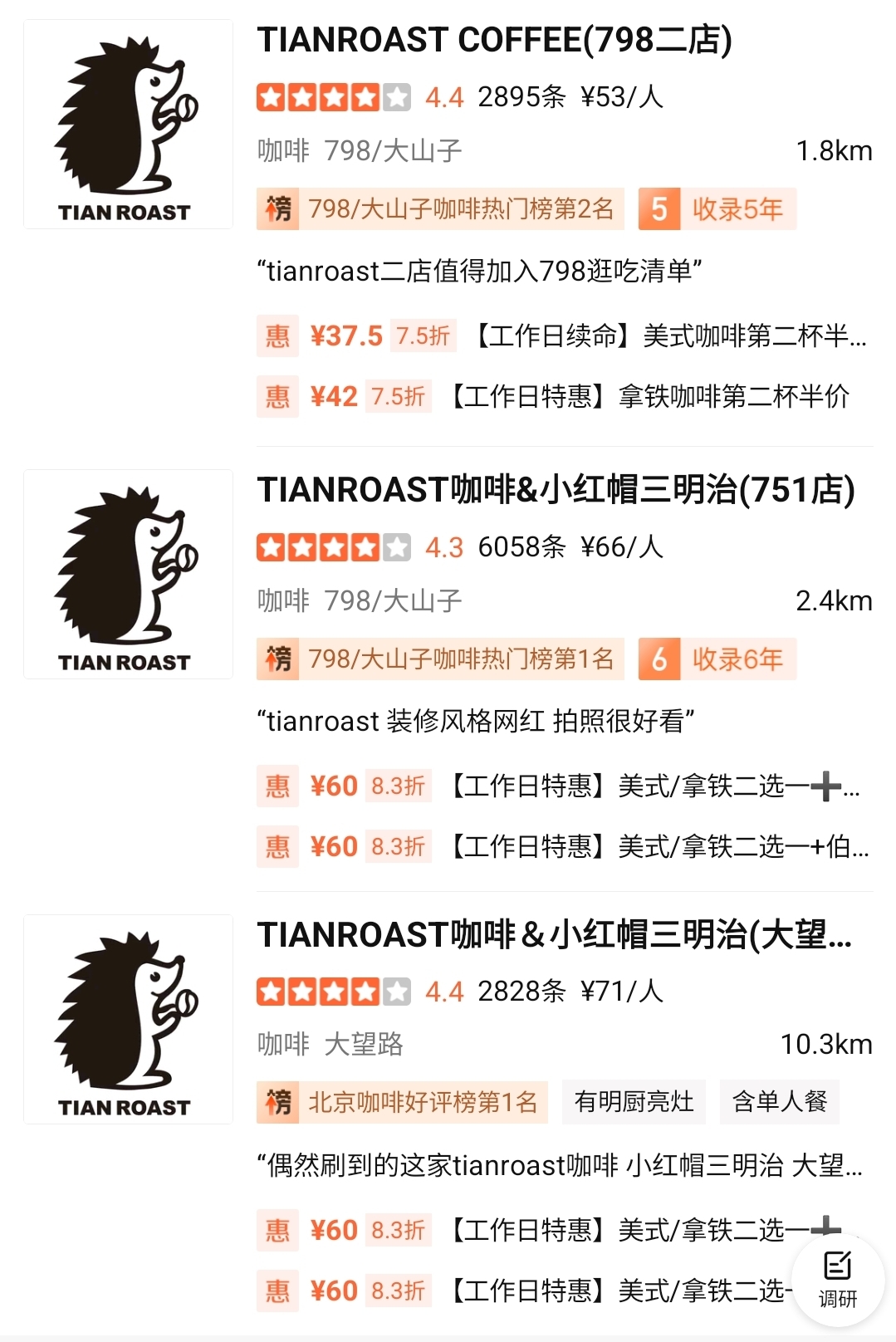 'TIANROAST COFFEE (798 매장) ' 주소 및 위치