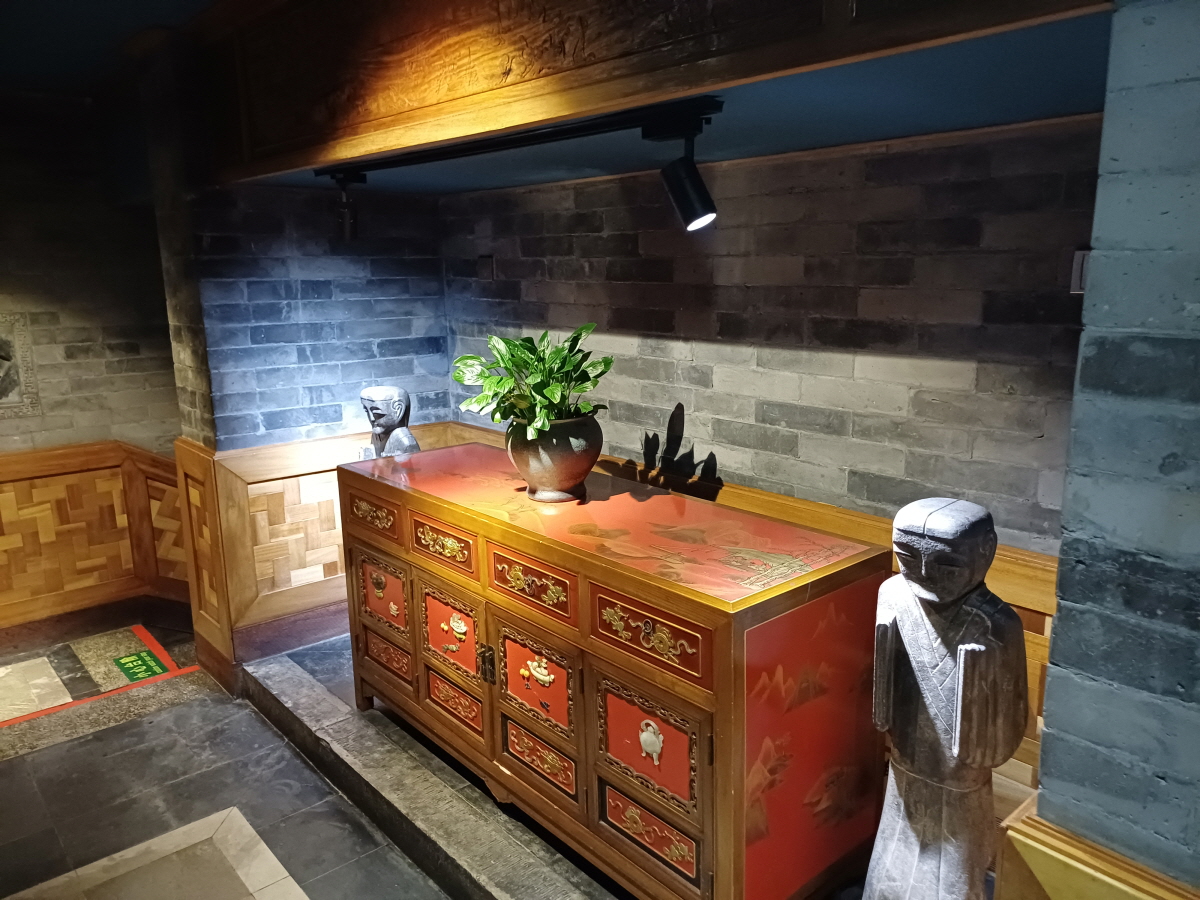 이곳의 대표 메뉴는 진한 국물과 다양한 재료가 어우러진 황탄쯔(皇坛子), 정교한 기술로 완성한 비즈 수피샤(秘制酥皮虾) 등으로, 북경 전통 가정식과 궁중 요리가 결합된 독창적인 맛을 선보인다. 특히 음식의 섬세한 플레이팅과 풍미는 정성과 장인의 손길을 느끼게 하며, 가격 또한 합리적인 수준으로 평가받는다. 인테리어 역시 큰 매력으로, 청나라식 사합원 구조를 기반으로 청벽돌, 붉은 대문, 나무 가구, 청자기 식기를 조화롭게 배치해 고풍스럽고 아늑한 분위기를 자아낸다. 마치 옛 시대로 돌아가 궁중 연회에 참석한 듯한 체험을 제공해, 많은 손님들이 특별한 추억을 남길 수 있다.