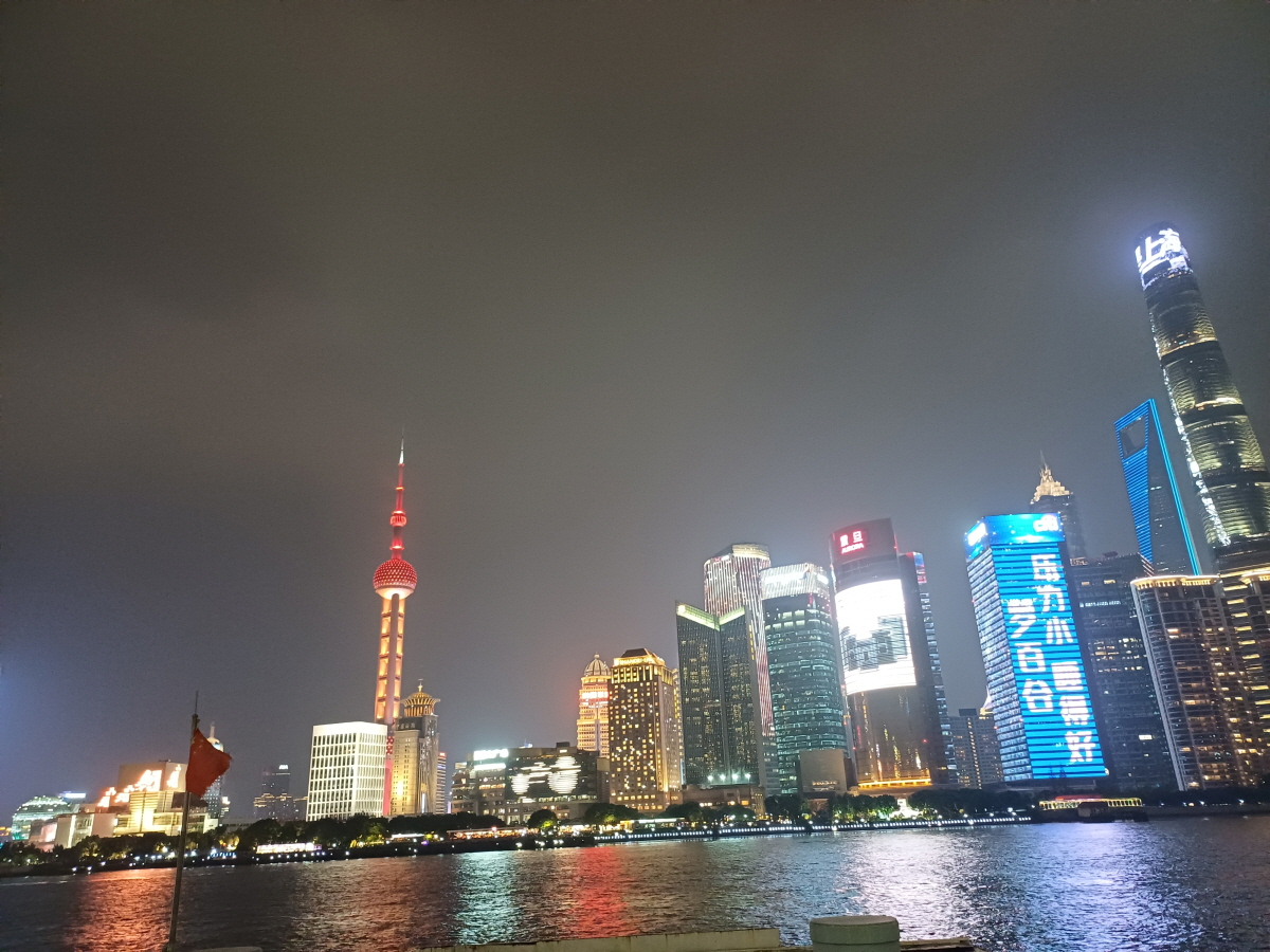 식사를 마친 후 길 건너에 위치한 와이탄 전망 보도 도로를 걸어봤다. 날씨가 흐려서 경치가 다소 흐릿했지만 건너편에 보이는 푸동지구의 야경은 정말 웅장하고 아름다웠다.
