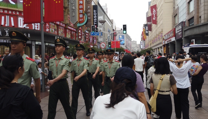 연휴기간 인원 통제차원에서 투입된 중국 인민군의 모습 이후 주요 관광지에서도 계속 인민군을 볼 수 있었다.
