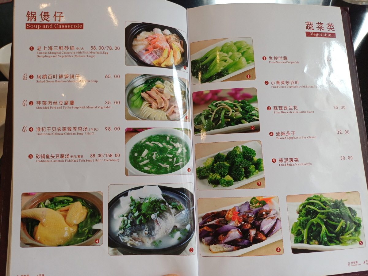 상하이 가정식 위주의 메뉴를 취급하는 식당이다보니 메뉴판에 음식의 가짓수가 정말 많았다. 그중에서 요리 3개를 골라 주문해 봤다.