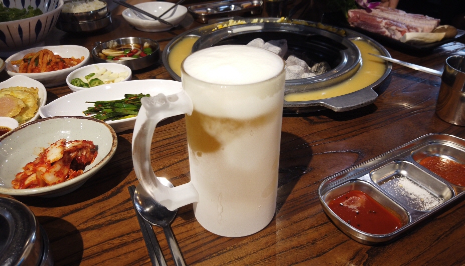 이곳에서는 삼겹살을 주문해서 먹었는데, 기본 반찬이 워낙 훌륭하게 나왔으며, 갈증을 달래기 위해 주문한 살얼음 맥주도 정말 환상적이었다. 당연히 직원분이 정성을 담아서 구워주는 고기도 맛이 좋았다.