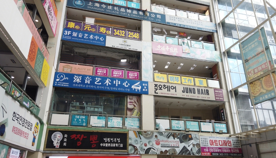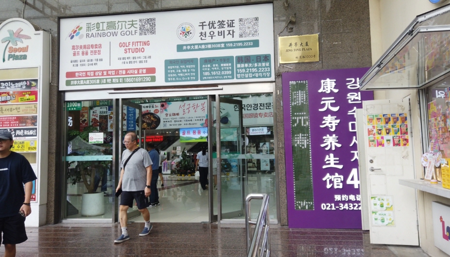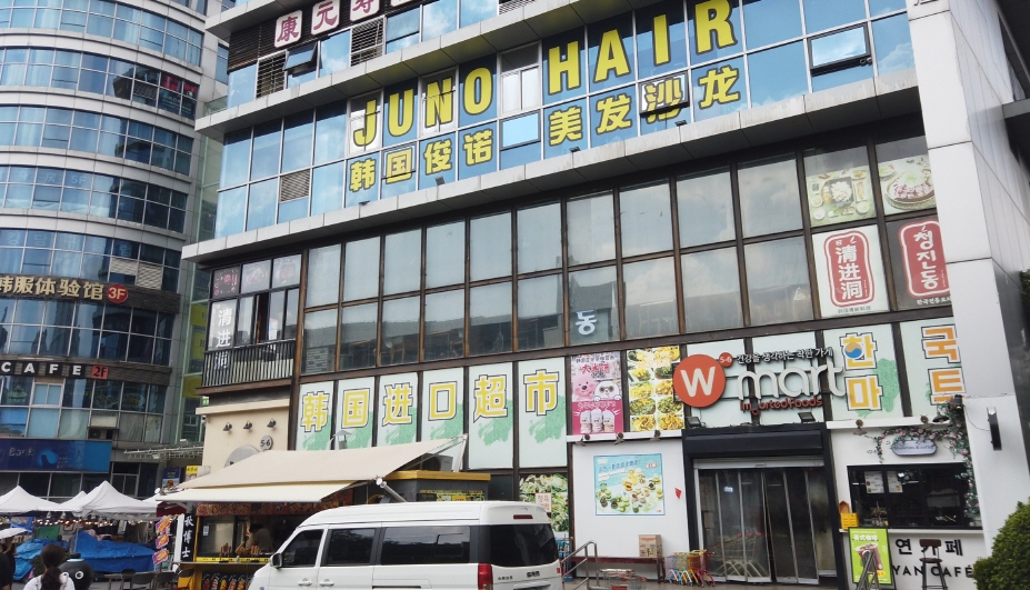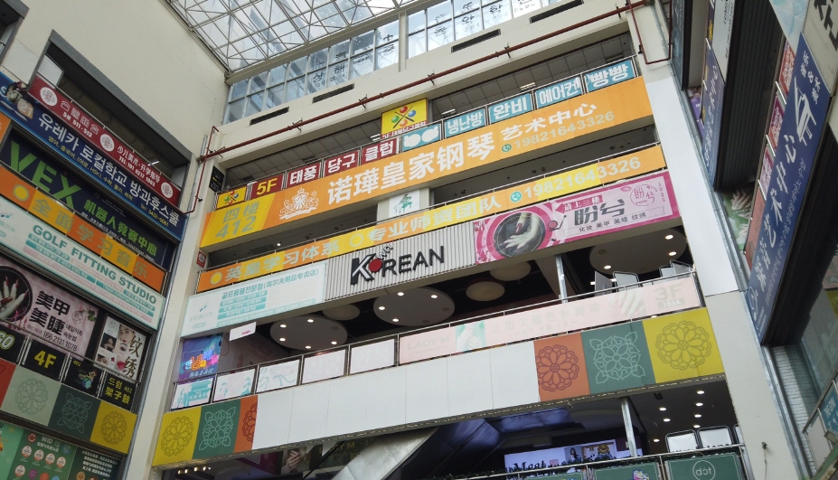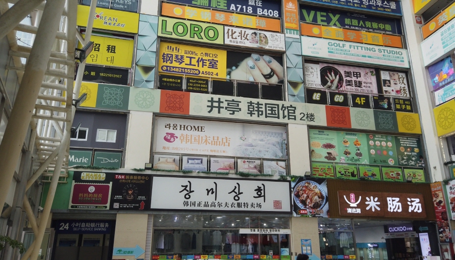 징팅따샤(井亭大夏)라는 건물에 들어가 보니, 흡사 한국에 온 것 같은 느낌이 들 정도로 한국 상가들로 가득했다.