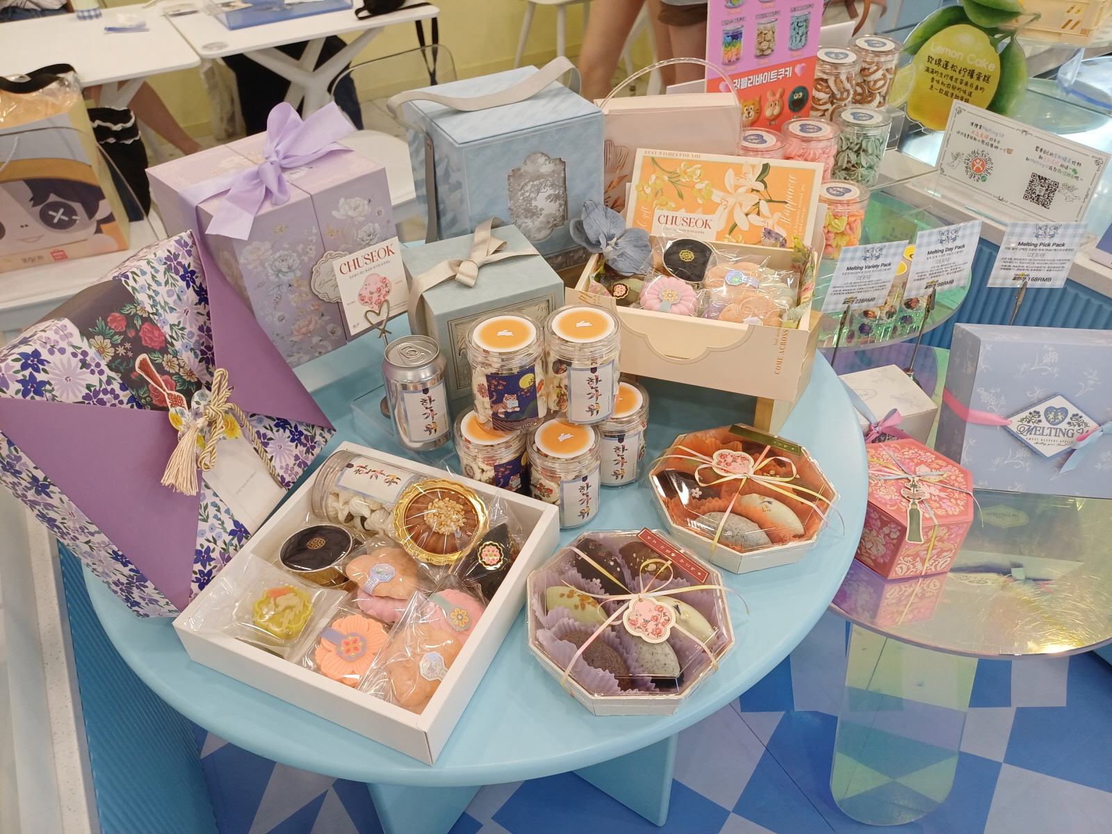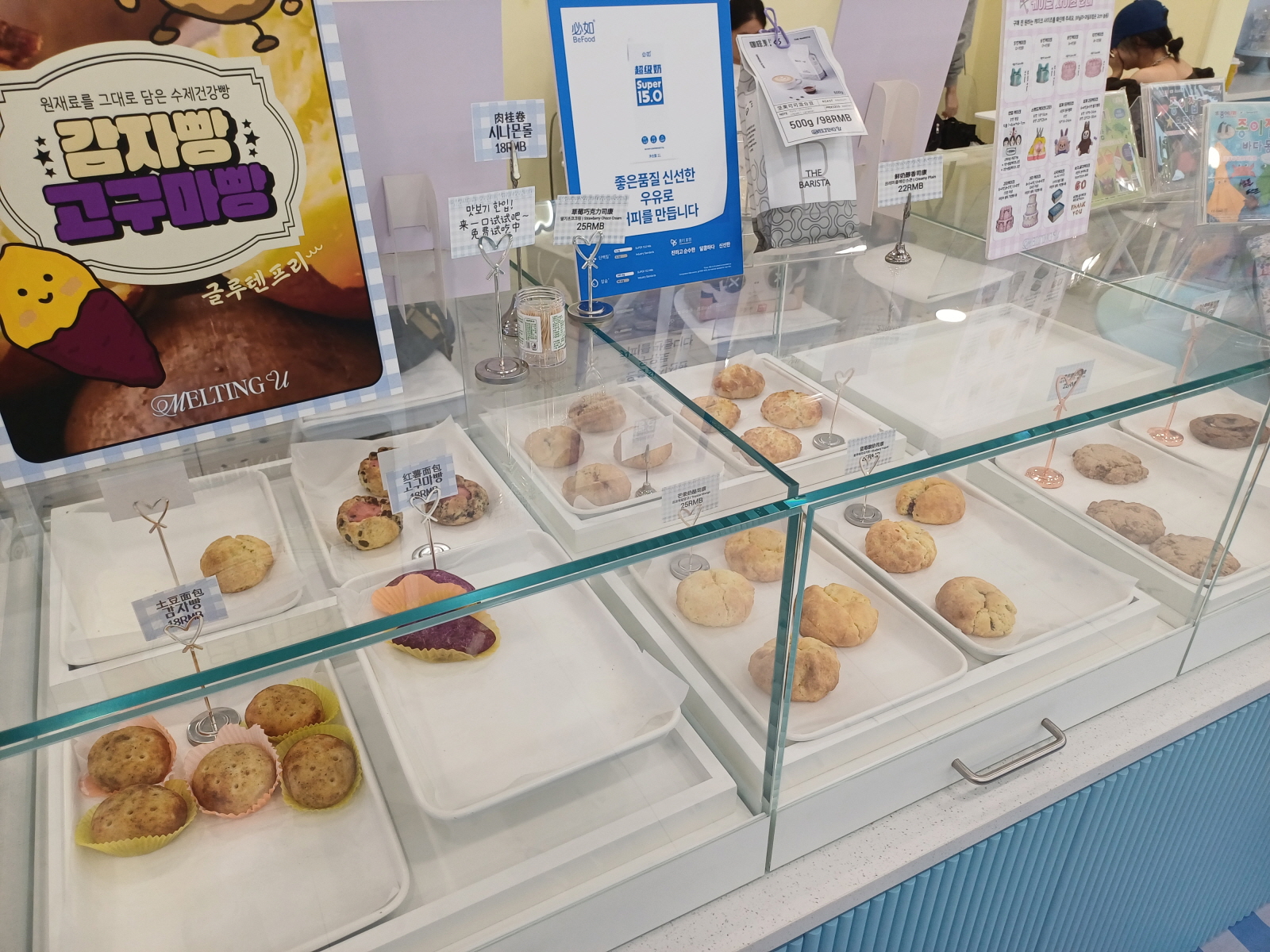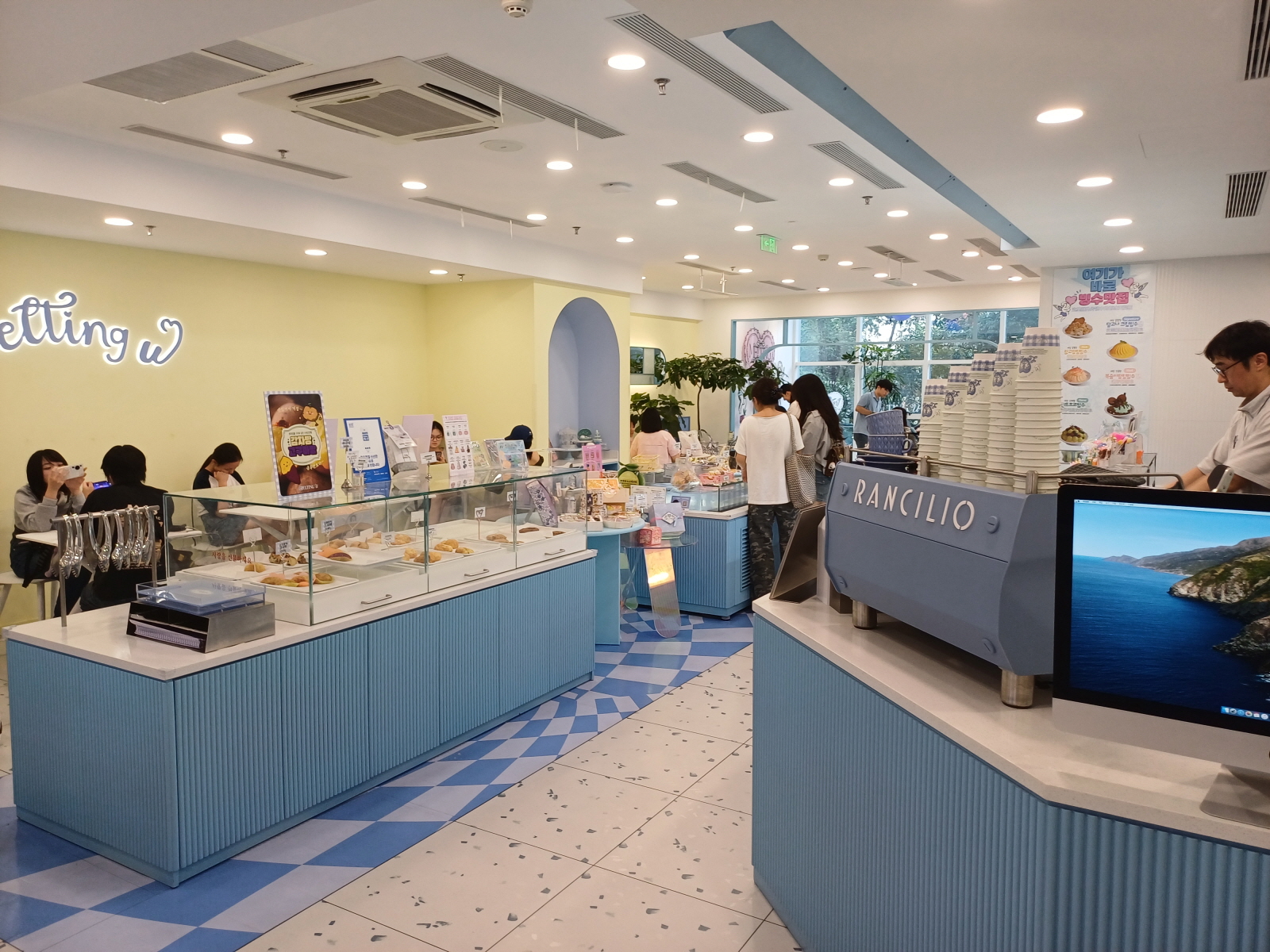 굉장히 상큼한 인테리어의 카페었는데, 무슨 코스프레를 한 중국인들도 많이 와서 간식들을 즐기고 있었다.