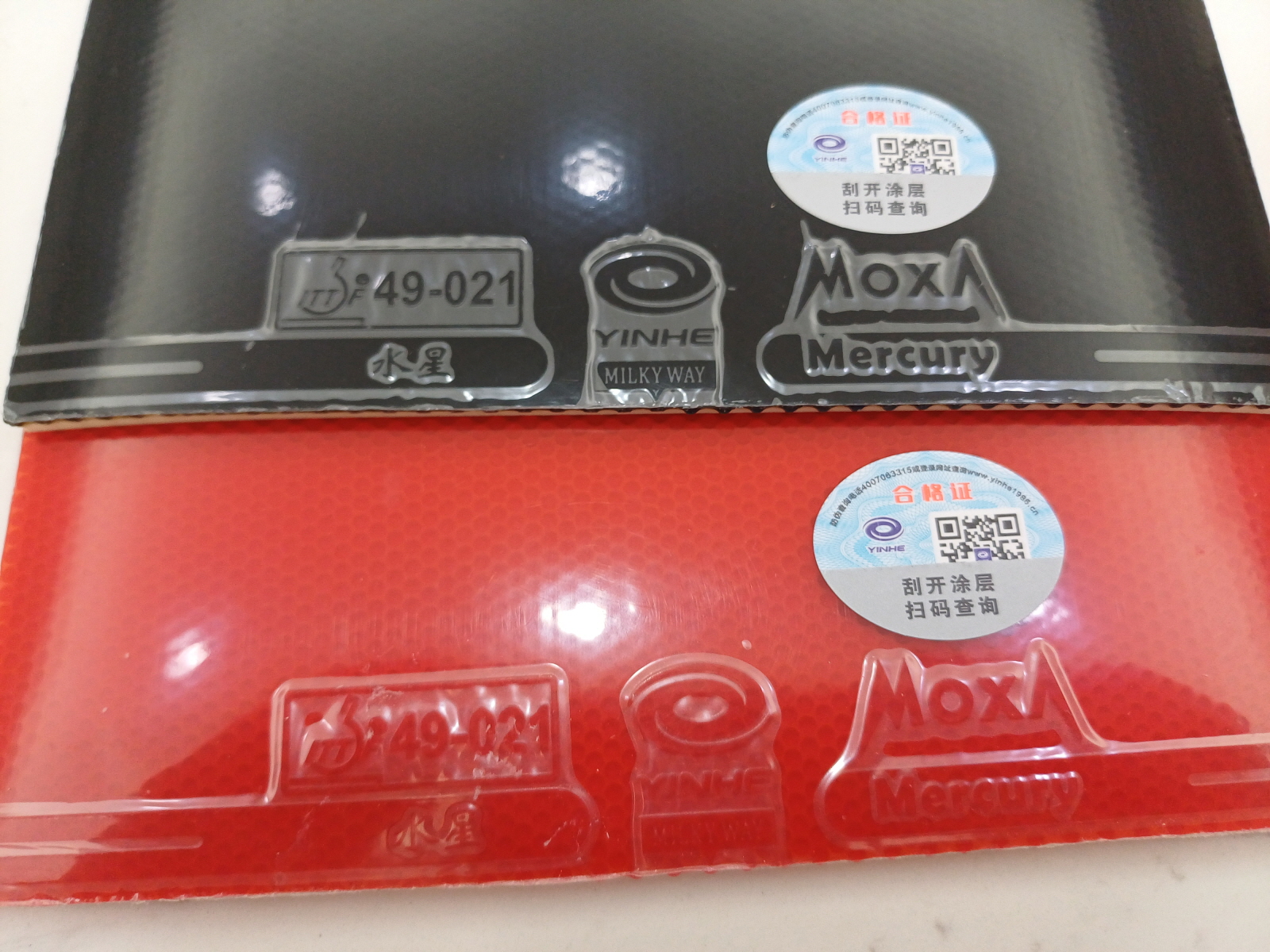 러버에 QR코드와 인증번호 스티커가 있어서 스캔을 해보니 YINHE 공식 홈페이지에서 시리얼 번호 조회가 가능했으며, 번호를 조회해 보니 정품이라는 문구를 볼 수 있었다. 저렴한 러버도 이렇게 관리하는 것을 보니 나름 신뢰가 갔다.