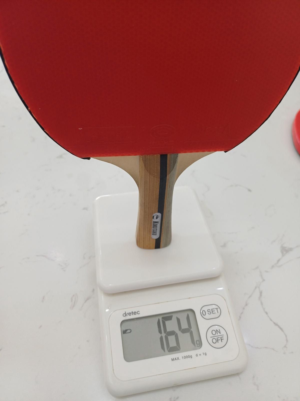러버 교체 후 무게를 측정해 보니 164g이 나왔다. 적정 무게가 얼마인지 챗 GPT에 물어보니 내 라켓의 무게는 수비형 혹은 올라운드형 라켓의 무게에 속했다.