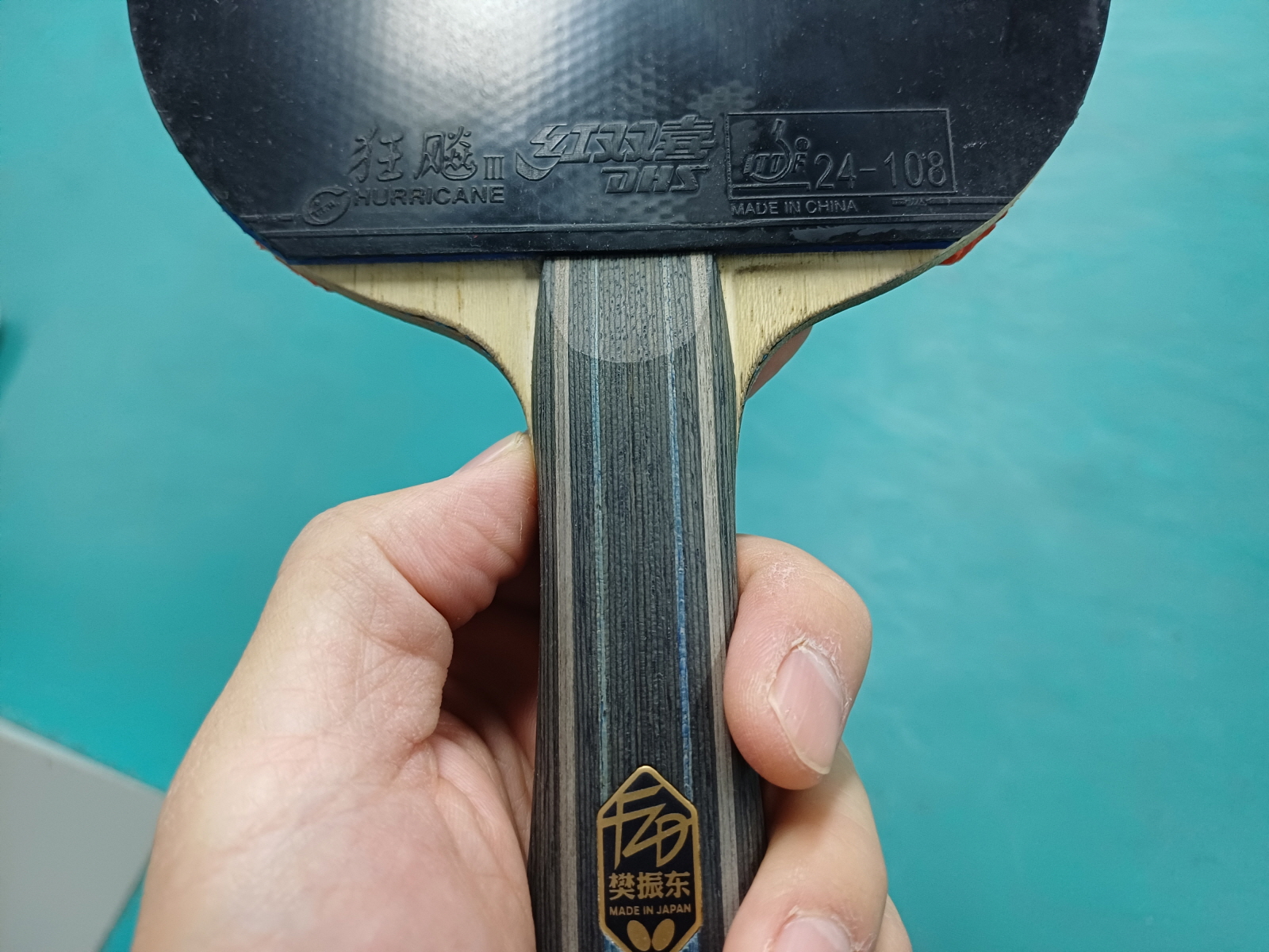 다른 회원분의 라켓과 러버 사진을 찍어 나중에 검색을 해보니, 블레이드는 버터플라이 브랜드의 판젠동이었으며, 러버는 허리케인 3이라는 제품이었다. 블레이드 가격은 RMB989, 러버는 한 면에 RMB128. 판젠동 블레이드는 짝퉁도 참 많이 판매 중이었는데 짝퉁 가격도 RMB189이나 할 정도로 인기 제품이었다.