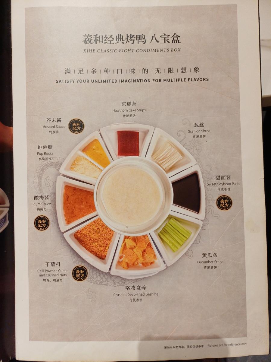 다른 베이징 카오야 식당과 다르게 곁들여 먹는 소스가 참 다양했다.