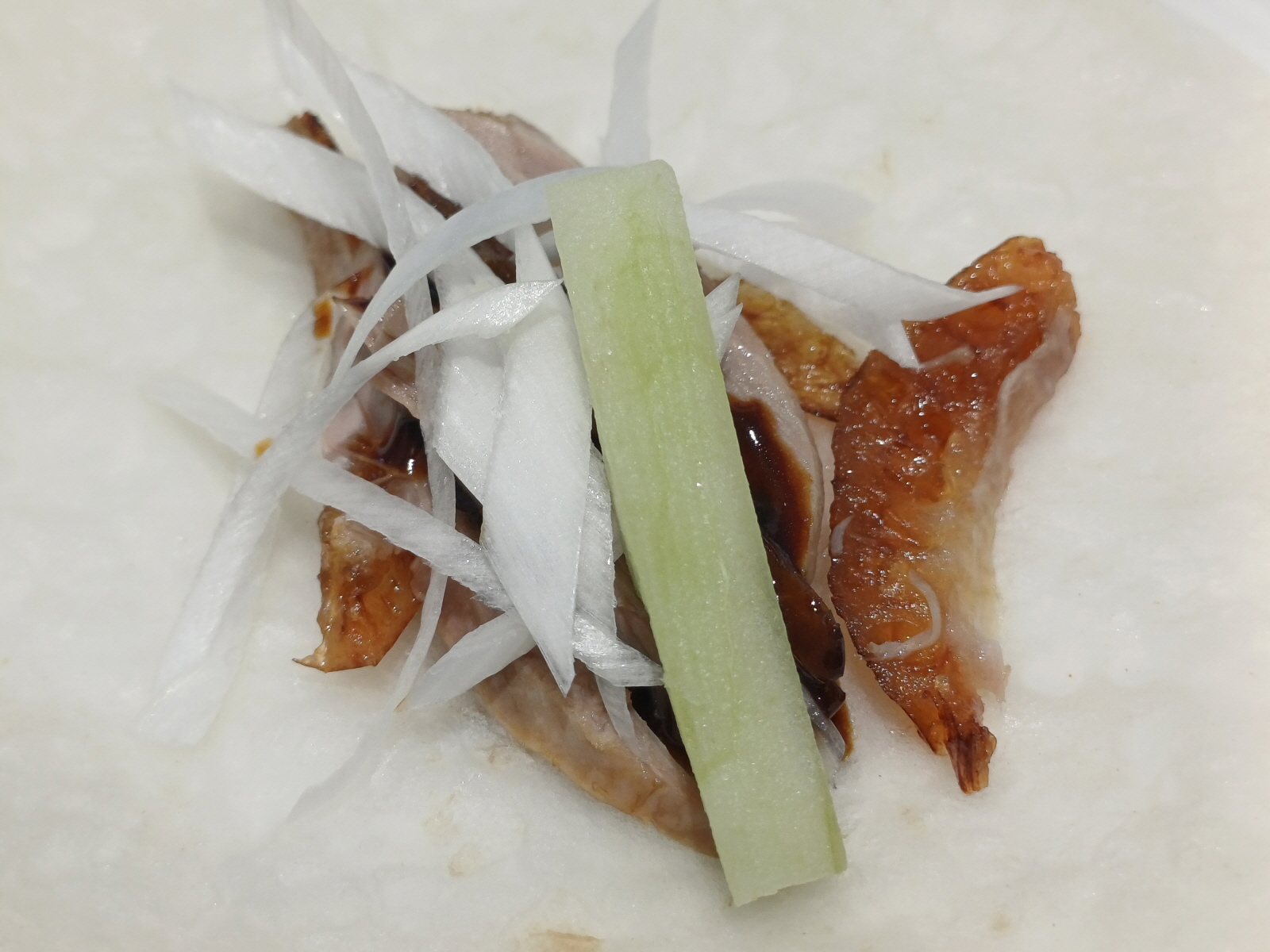 껍질을 설탕에 찍어서 먹어도 보고, 전병에 쌈도 사서 먹어봤는데, 오리지날 북경오리 맛 그 자체였다.