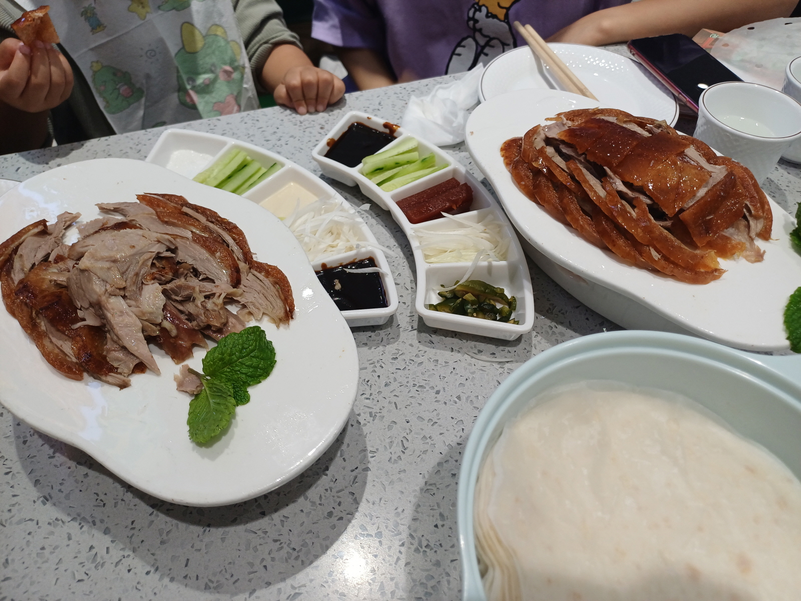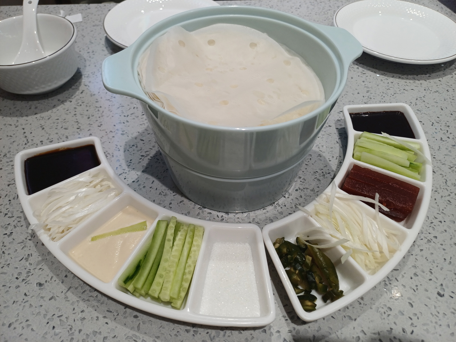 북경오리와 곁들여 먹는 전병과 소스들은 기본적인 구성이었다.