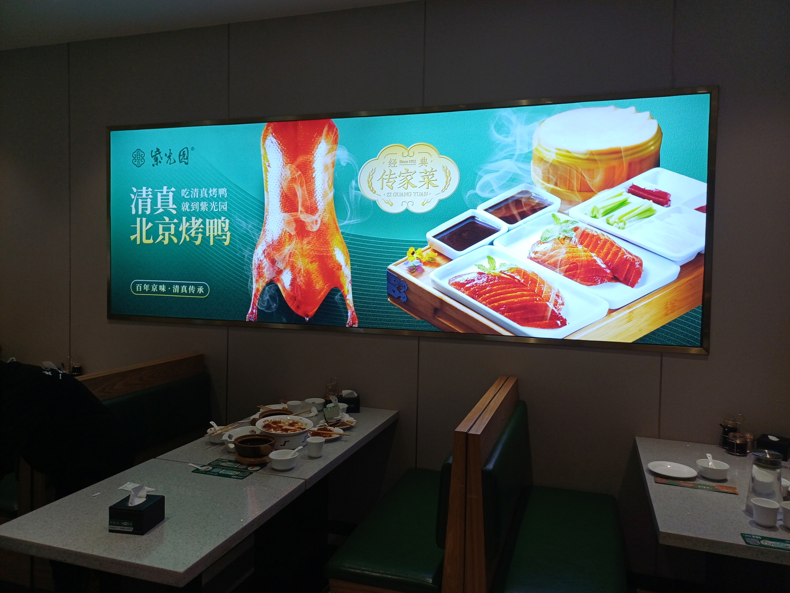 현재 베이징 전역에 수십 개의 지점을 운영하며, 합리적인 가격과 깔끔한 분위기로 현지인들에게 사랑받는다. 대표 메뉴는 ‘紫光园清真烤鸭(청진식 북경오리)’, ‘艾家炒疙瘩’, ‘古法酱焖手撕鸡’ 등이며, 최근에는 진한 크림 요거트 음료(奶皮子酸奶)가 젊은 층 사이에서 인기를 얻고 있다.