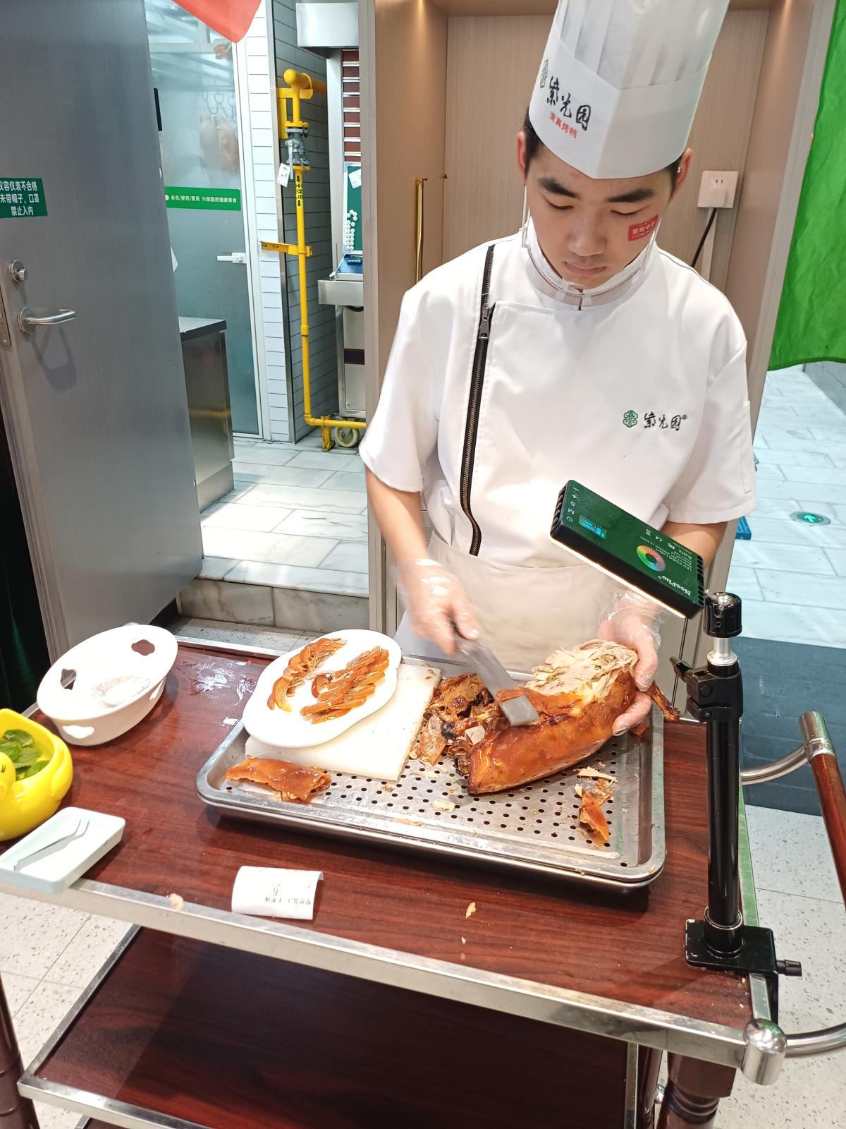 가성비 식당이지만 그래도 직원이 직접 북경오리를 정성껏 썰어주는 모습을 볼 수 있었다. 언제 봐도 참 힐링이 되는 장면!