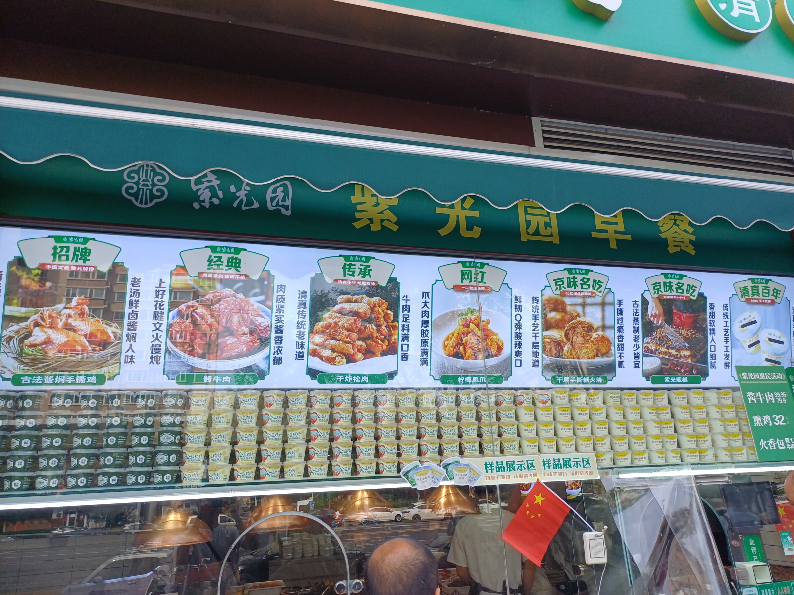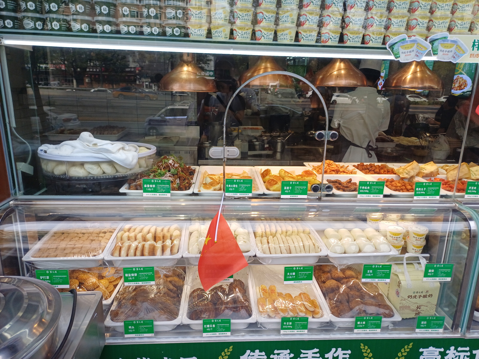 식당 앞에서는 포장 판매를 하는 간단한 음식들이 전시되어 있었는데, 테이크아웃 창구에서 바로 구매가 가능했다.
