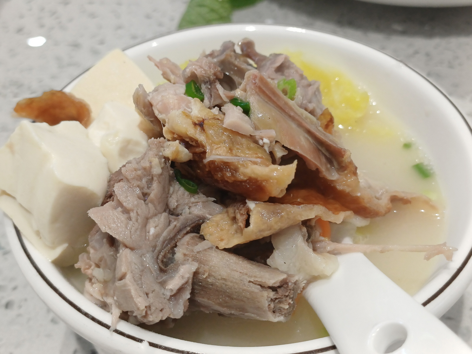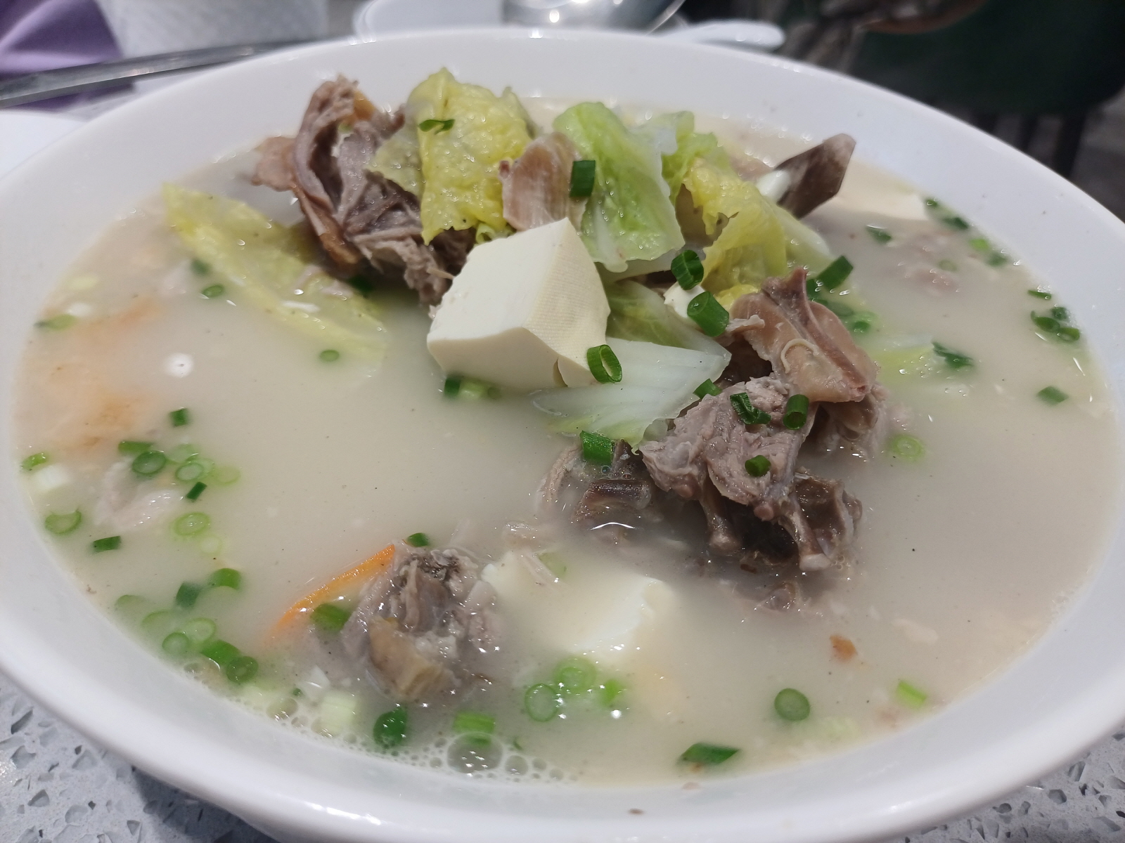 이어서 오리탕도 나왔는데 오리탕 안에 재료도 가득해서 오리탕만 먹어도 배가 부를 정도였다. 탕 안의 뼈에 붙어 있는 고기들은 먹기 조금 어려웠지만, 국물 하나는 끝내줬다.