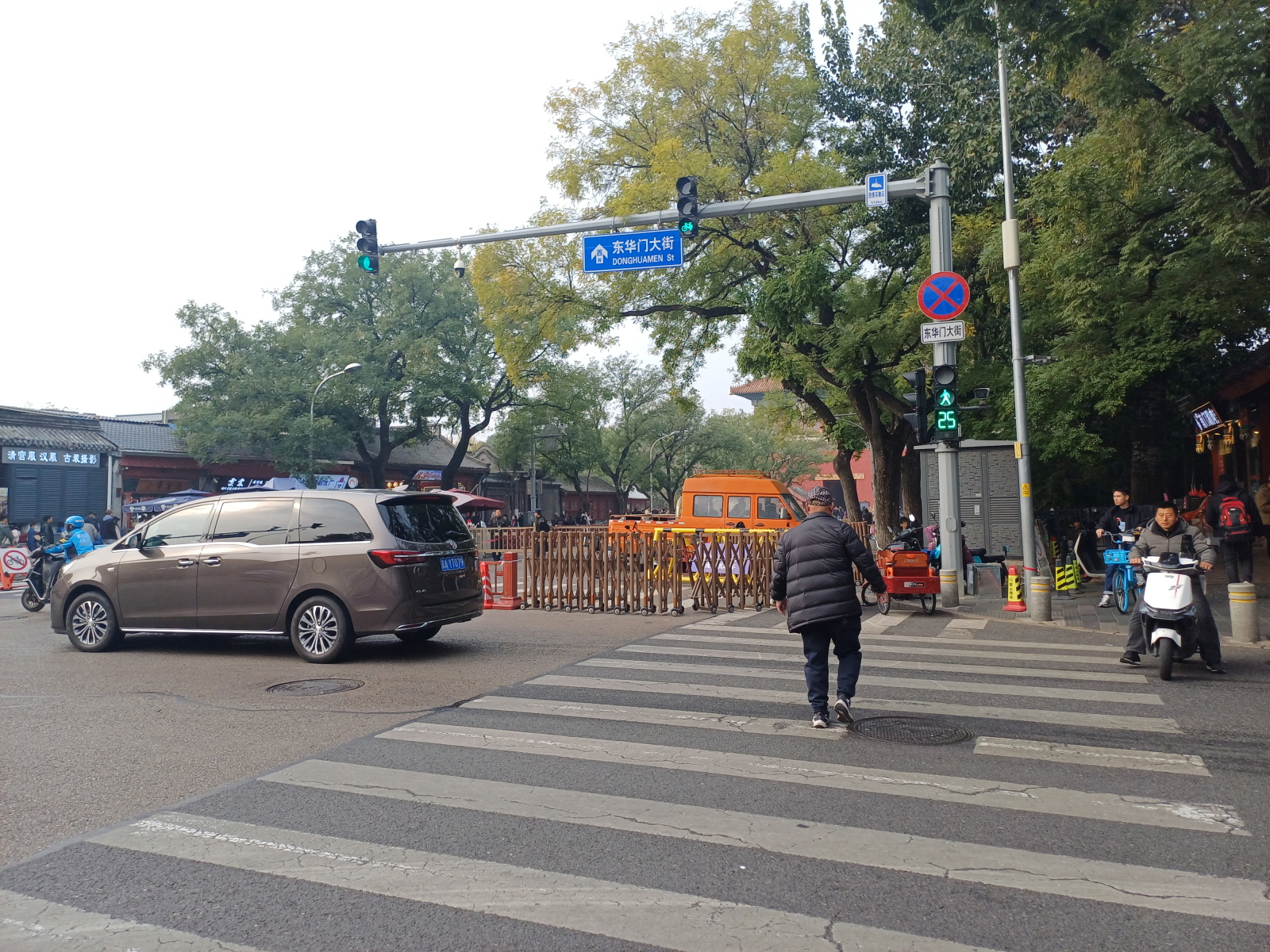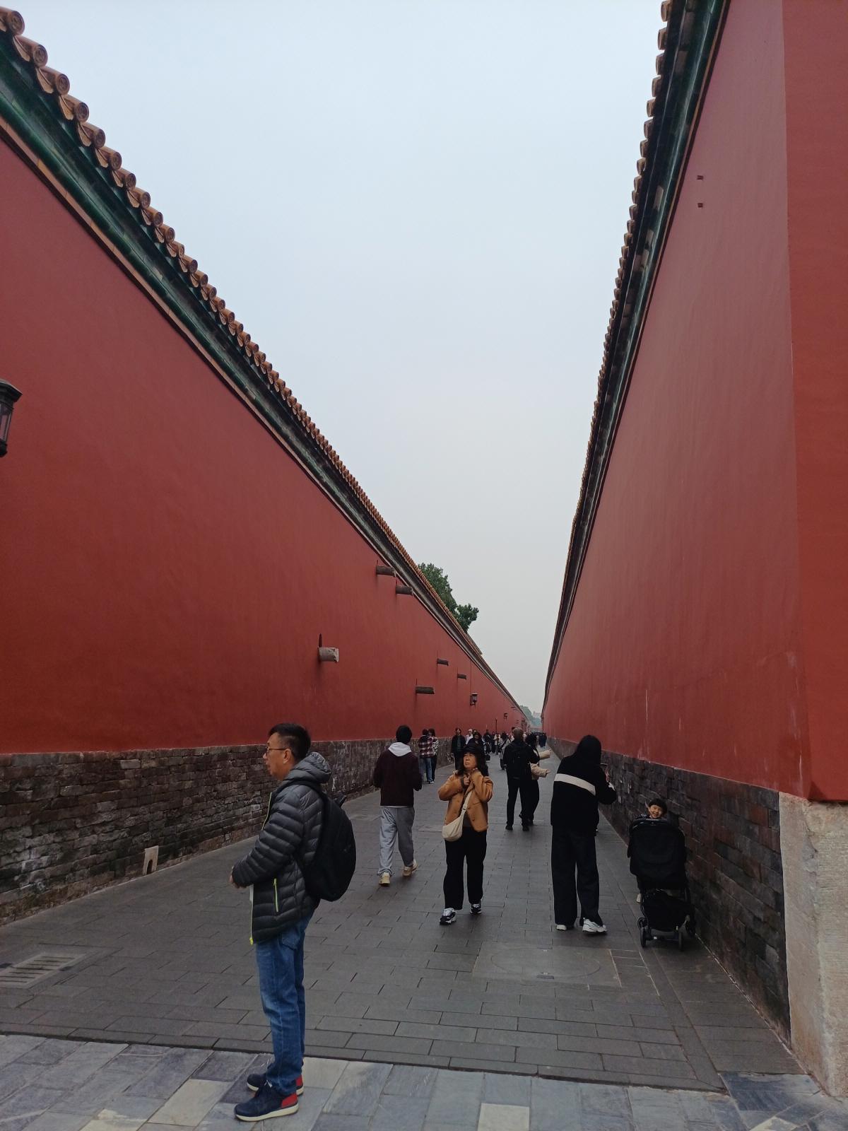 남쪽을 바라보니 멀리 단문(端门)이 보였으며, 천안문 광장 쪽에서 많은 관광객들이 일방통행로를 따라 걸어오고 있었다.