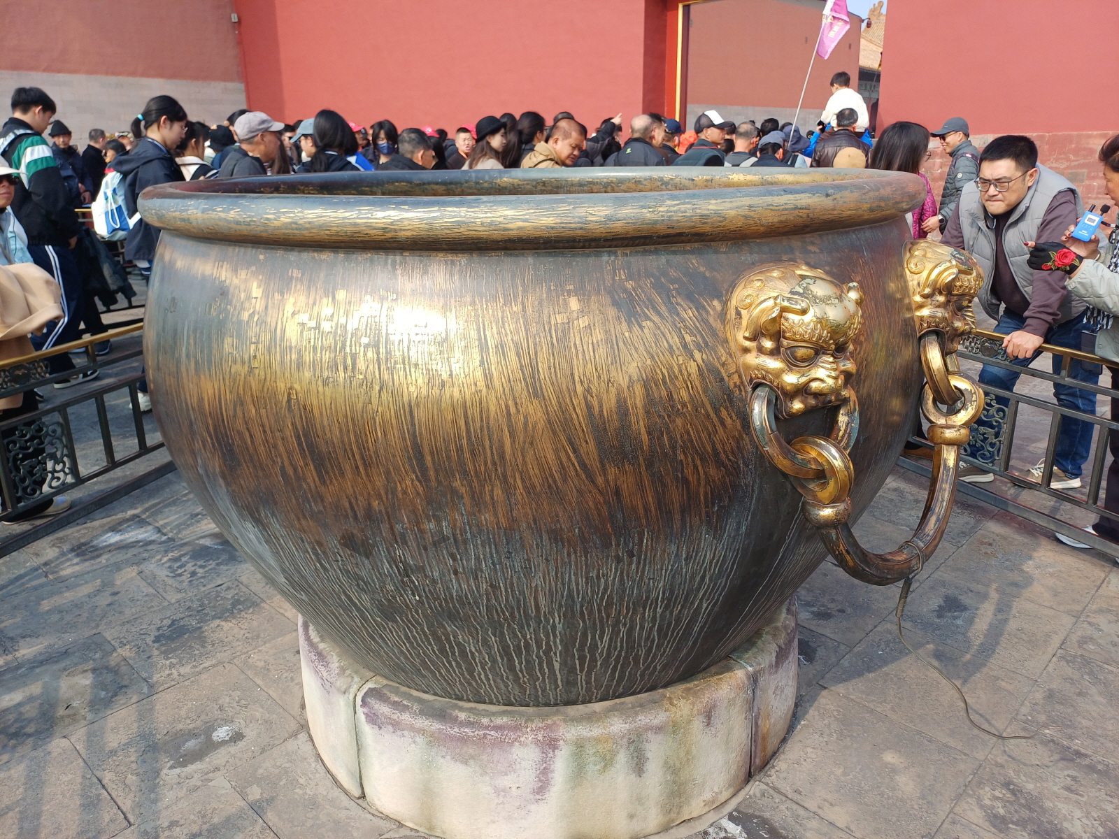 여기서부터 모습을 드러내는 소방용수를 담아두었던 큰 구리물통인 동철항(铜铁缸), 고궁 안에만 200개가 넘으며, 금박 물통도 22개가 있다고 한다.