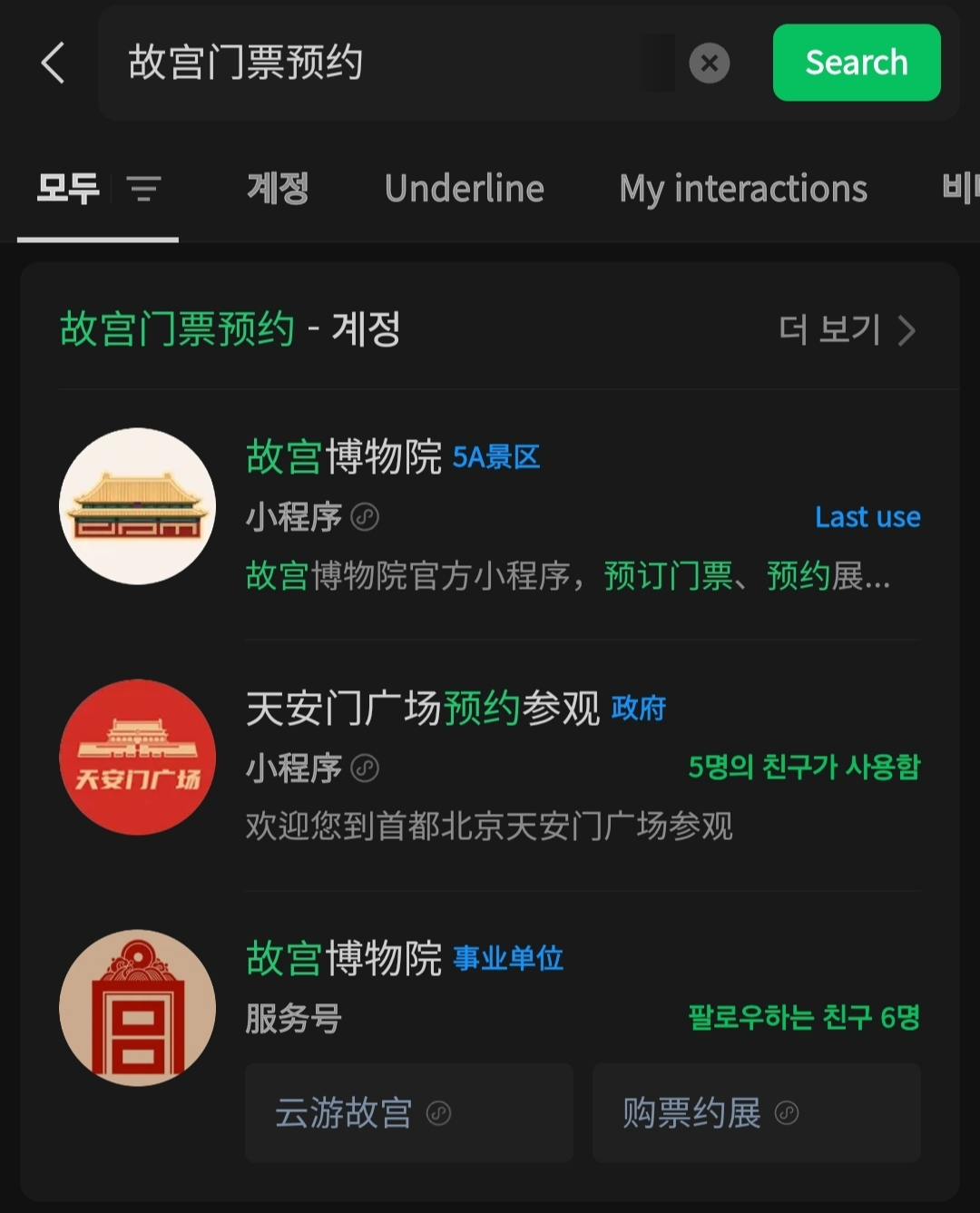 고궁박물관 입장을 위해서는 온라인으로 사전 예약을 해야 하는데, 고궁박물관(故宫博物馆) 위챗 공중계정을 통해서 예약을 했다.