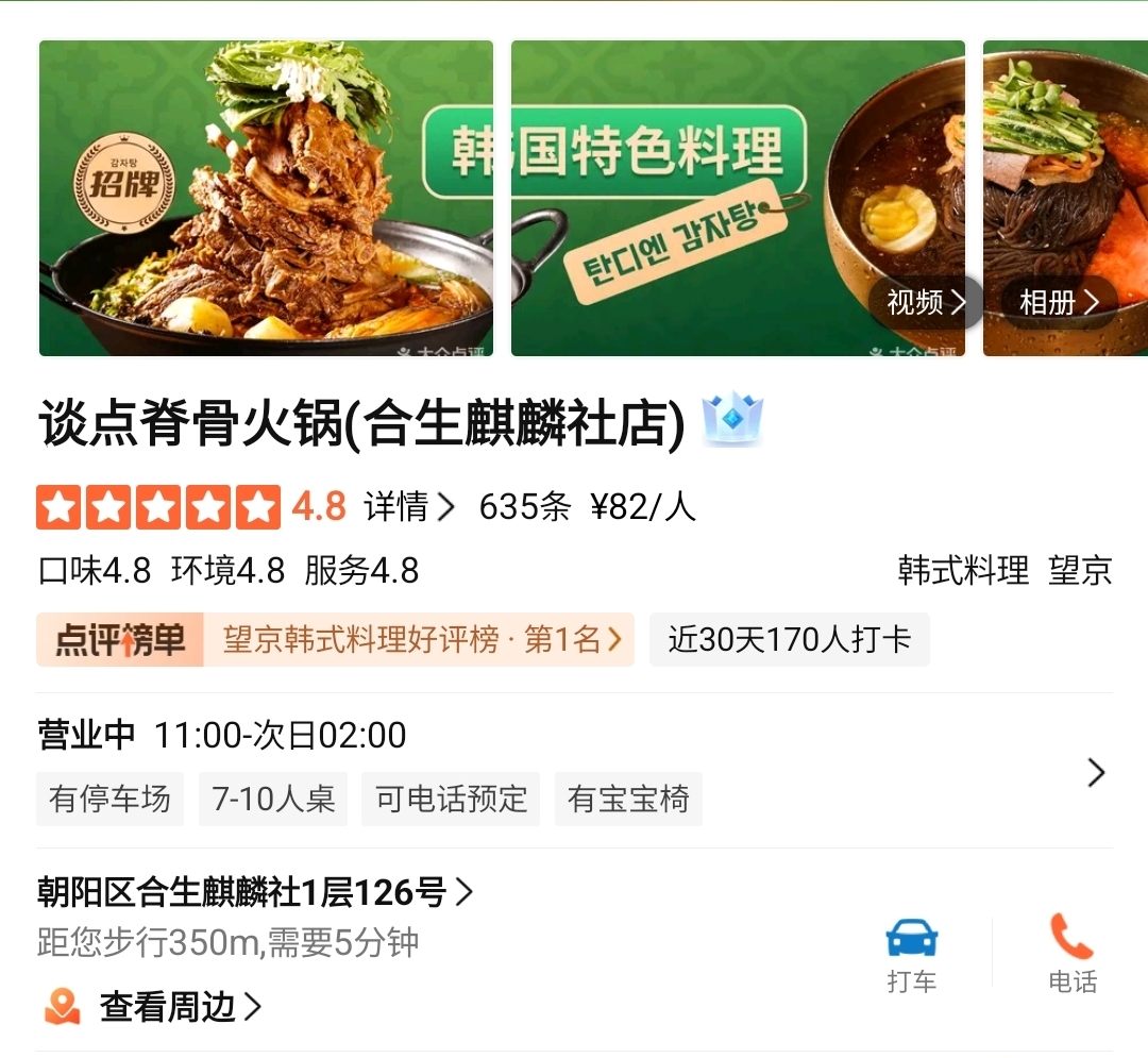 [쇼핑 중국어 공부] 베이징 왕징 기린사 한국식 감자탕 맛집 '탄디엔 감자탕(谈点脊骨火锅)'