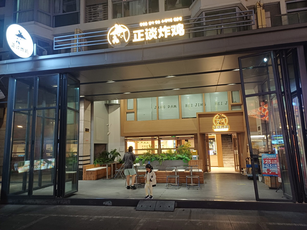 멀리서 언뜻 봤을 때는 치킨집이라고 느껴지지 않을 정도로 정말 심플한 디자인의 식당이었으며, 온라인 따종디엔핑(大众点评) 평점은 5점 만점에 4.4점으로 나름 높은 편이었다. 치킨집답게 영업시간은 오후 11시까지 운영을 하고 있었다.