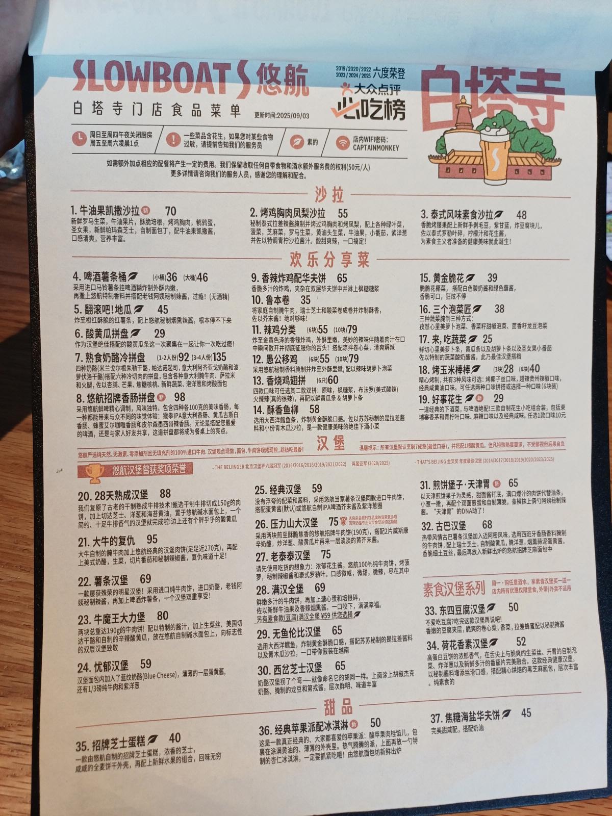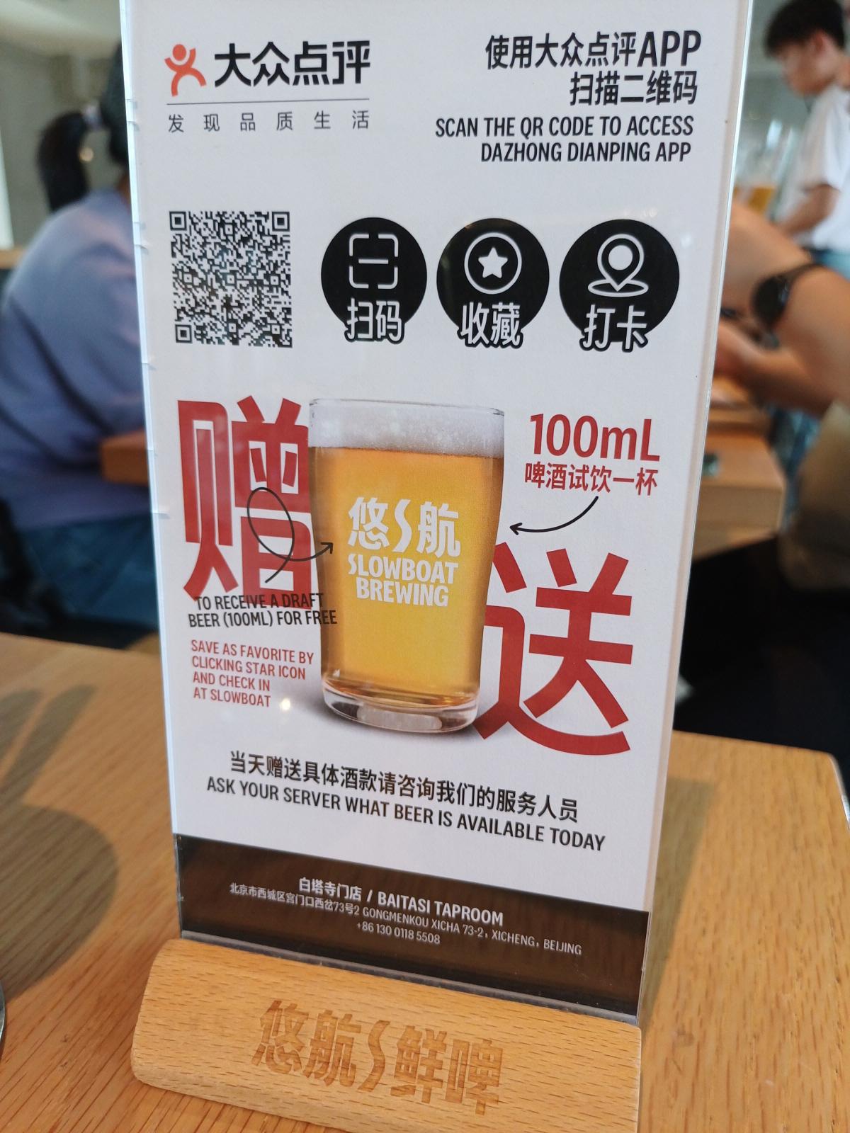 오늘의 3곳의 목적지를 모두 둘러본 뒤, 백탑사 옆 궁먼커우(宫门口) 후통거리에 위치한 수제맥주 전문점인 슬로우보트에 방문을 해봤다.