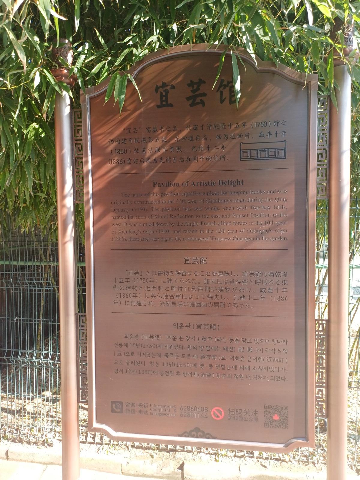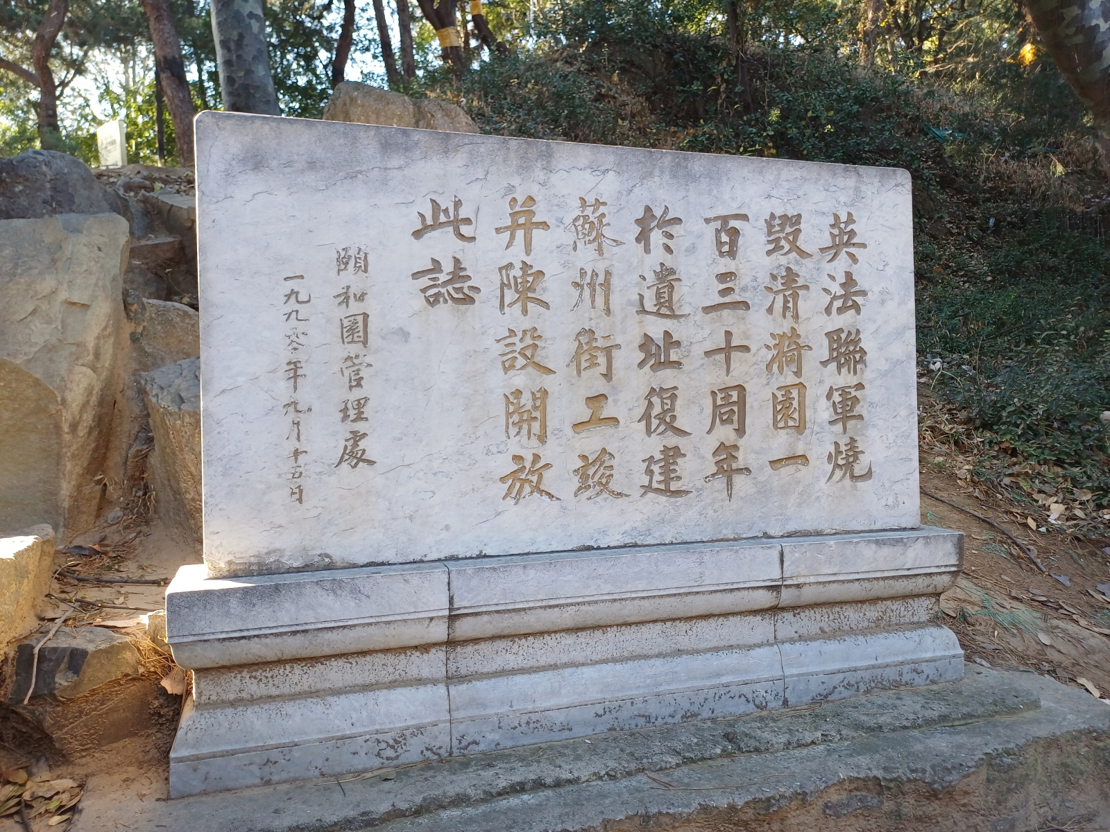 함풍 10년(1860년)에 영불 연합군에 의해 소실된 후, 광서 17년(1891년)에 은자 78만 냥을 들여 재건되었고, 광서 20년(1894년)에 완공되었다.