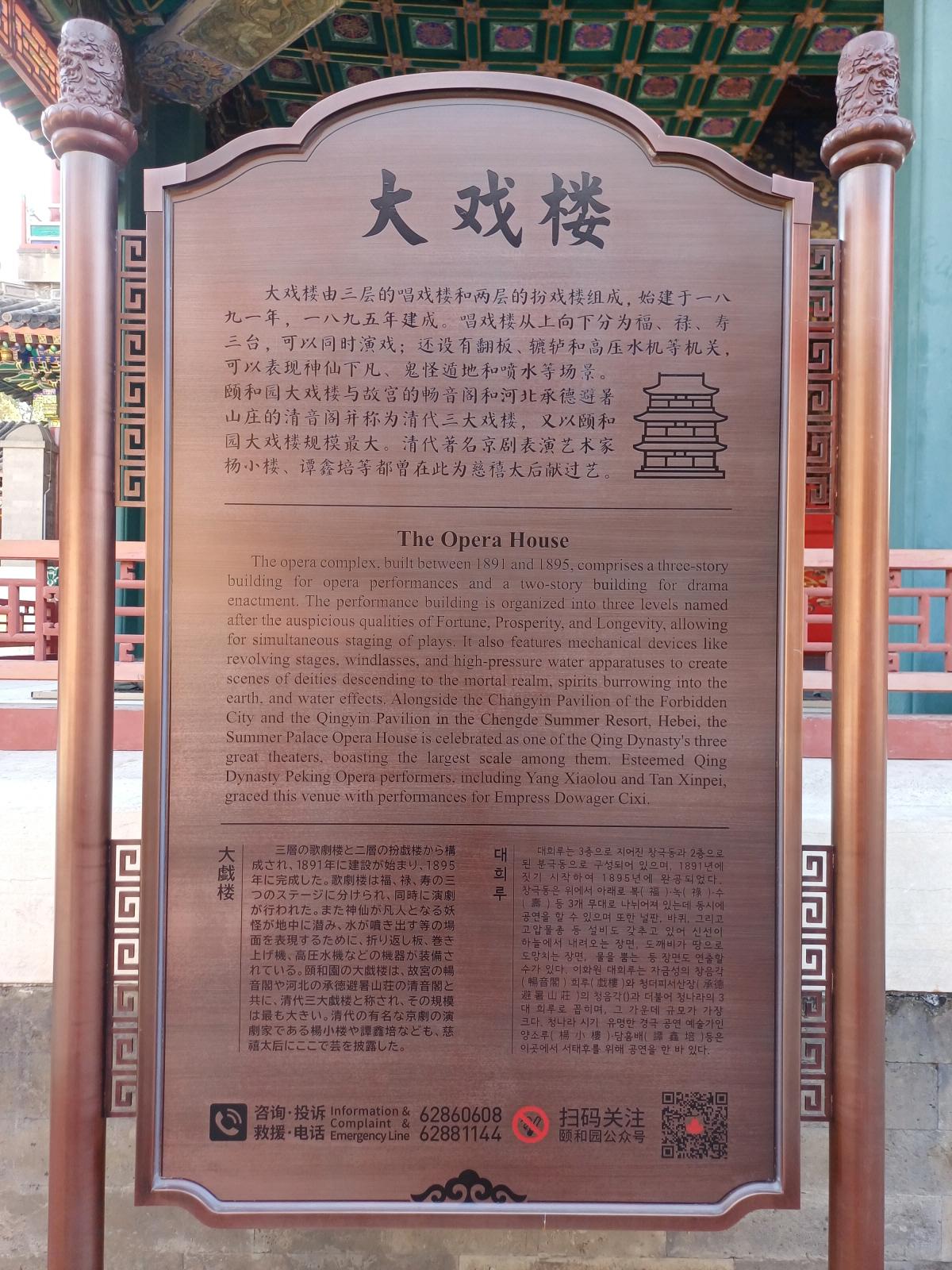 동쪽 구역으로 넘어와 가장 먼저 방문한 곳은 덕화원(德和园)이다. 이곳은 원래는 청 건륭제 시기 ‘의춘당(怡春堂)’이 있던 자리였으나, 광서 17년(1891년)에 대대적으로 개축되어 서태후가 경극과 궁중 공연을 관람하던 전용 극장 구역으로 재탄생했다.