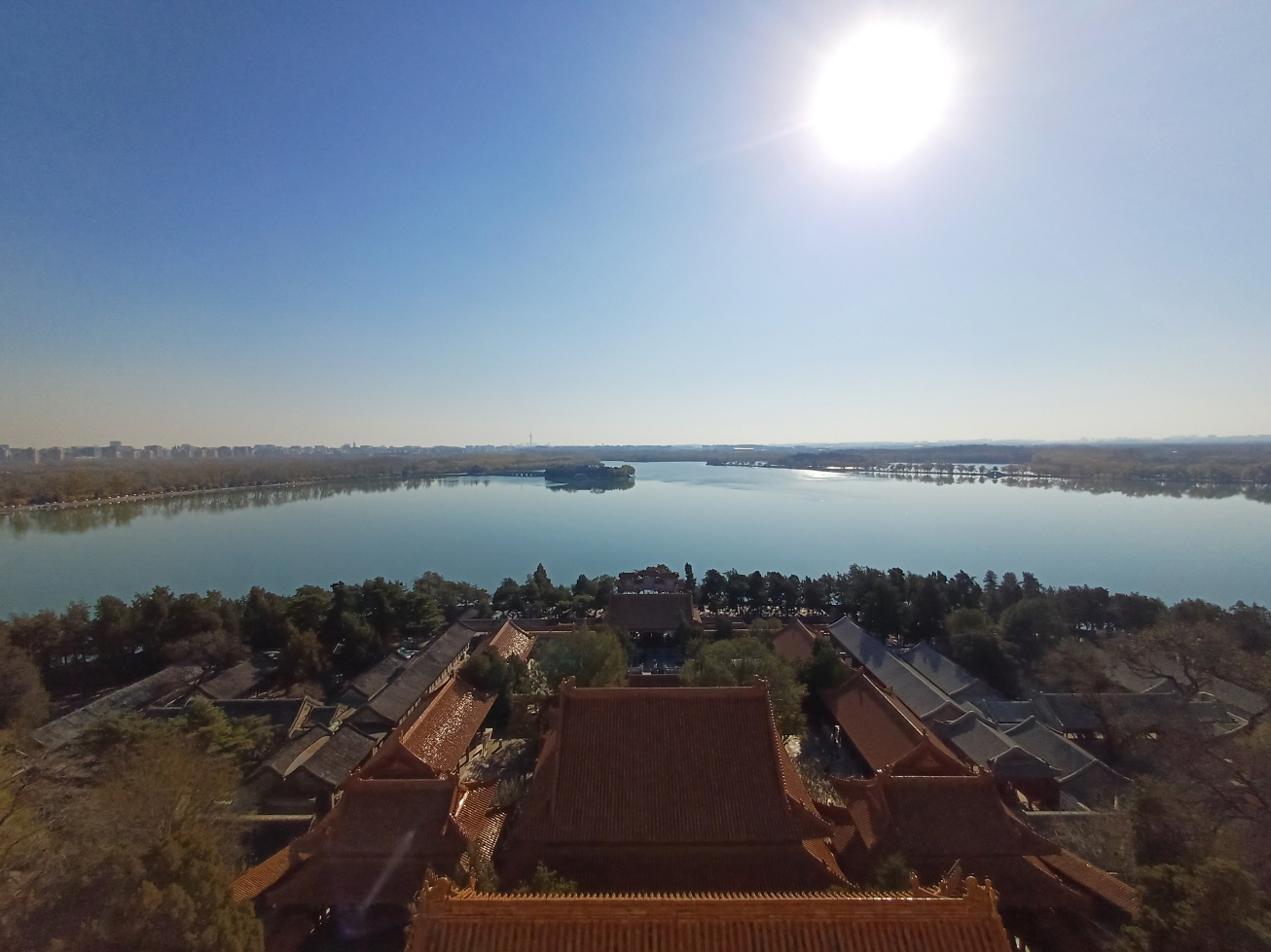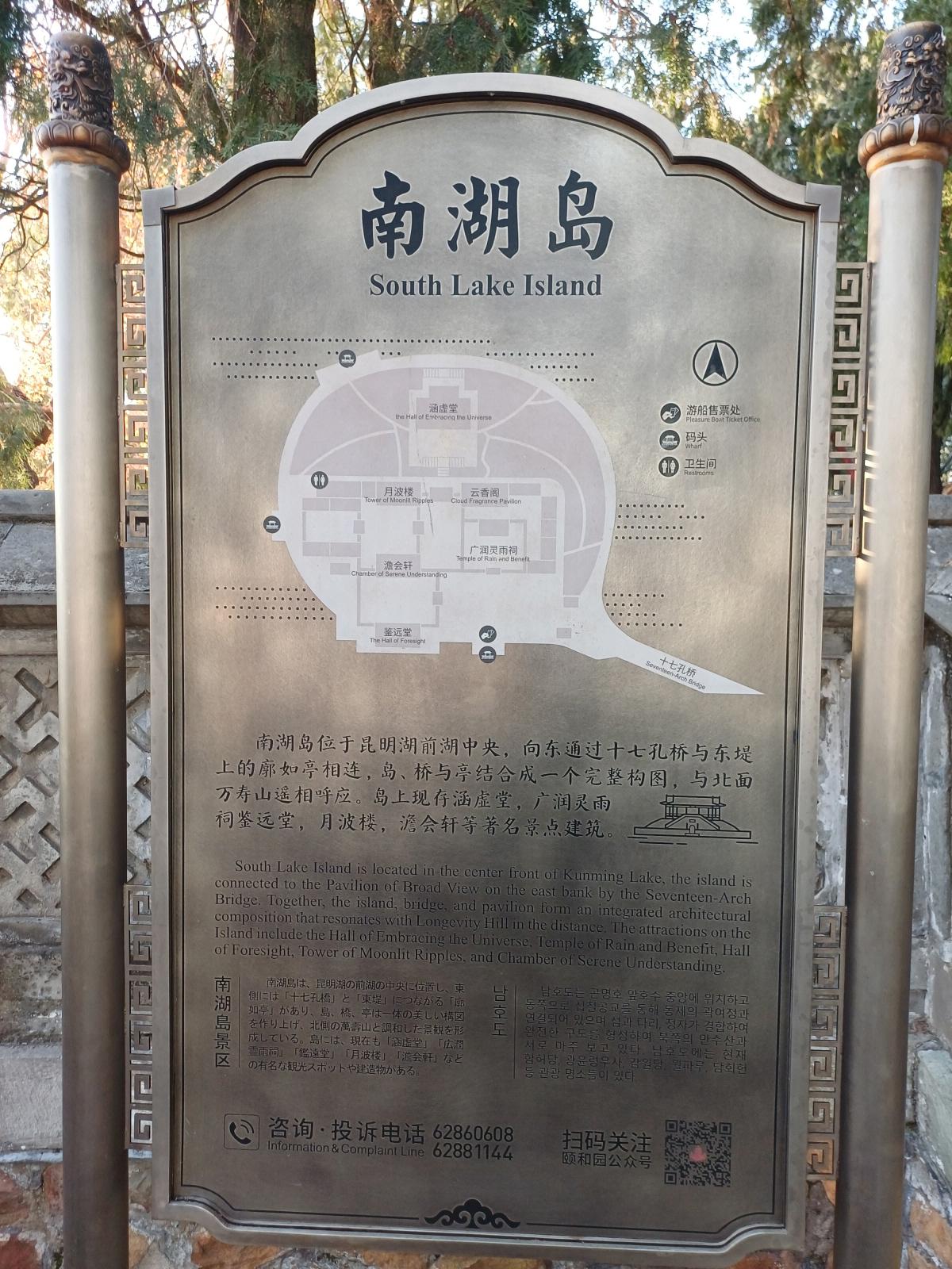 이후 광서 19년(1893년) 개수 과정에서, 서태후가 편리하게 섬에 오를 수 있도록 동쪽에 평교(平桥)를 새로 놓아 호동(湖东)과 섬이 연결되었다. 섬의 끝자락에서 이화원의 경치를 담아봤다.