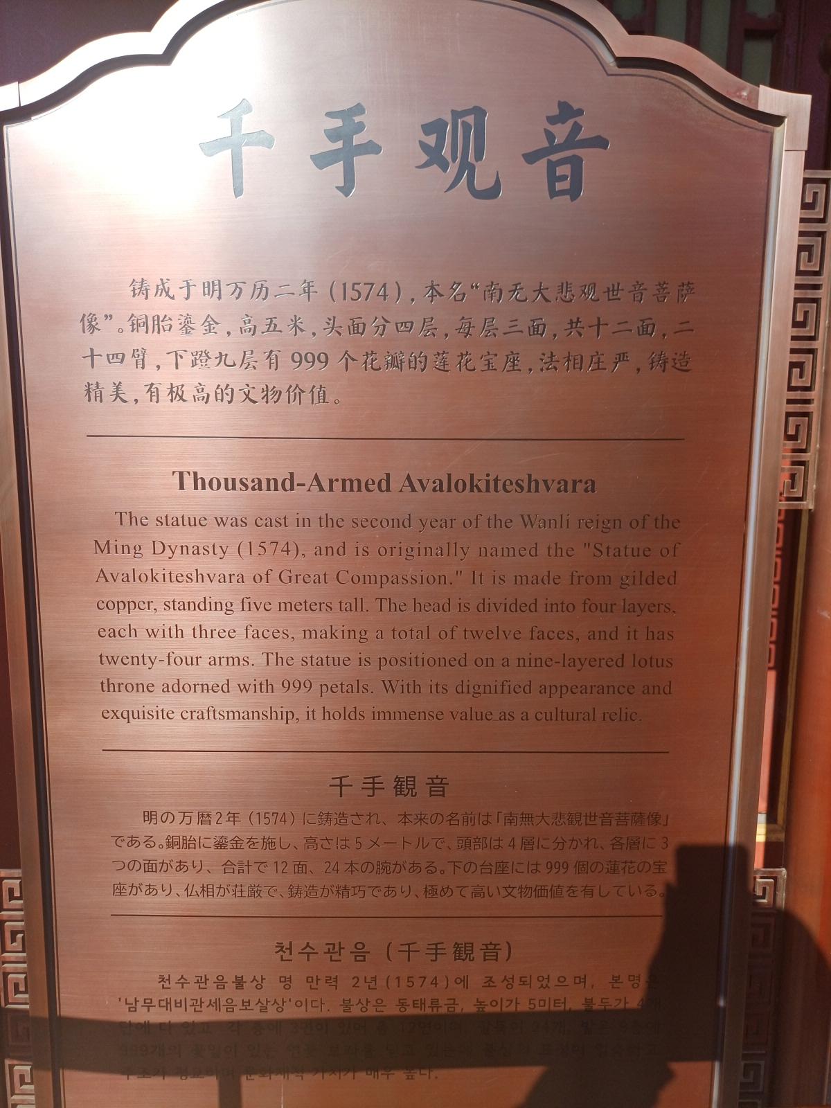 웅장한 불향각의 모습 내부에는 천수관음(千手观音)불상이 자리하고 있었다.
